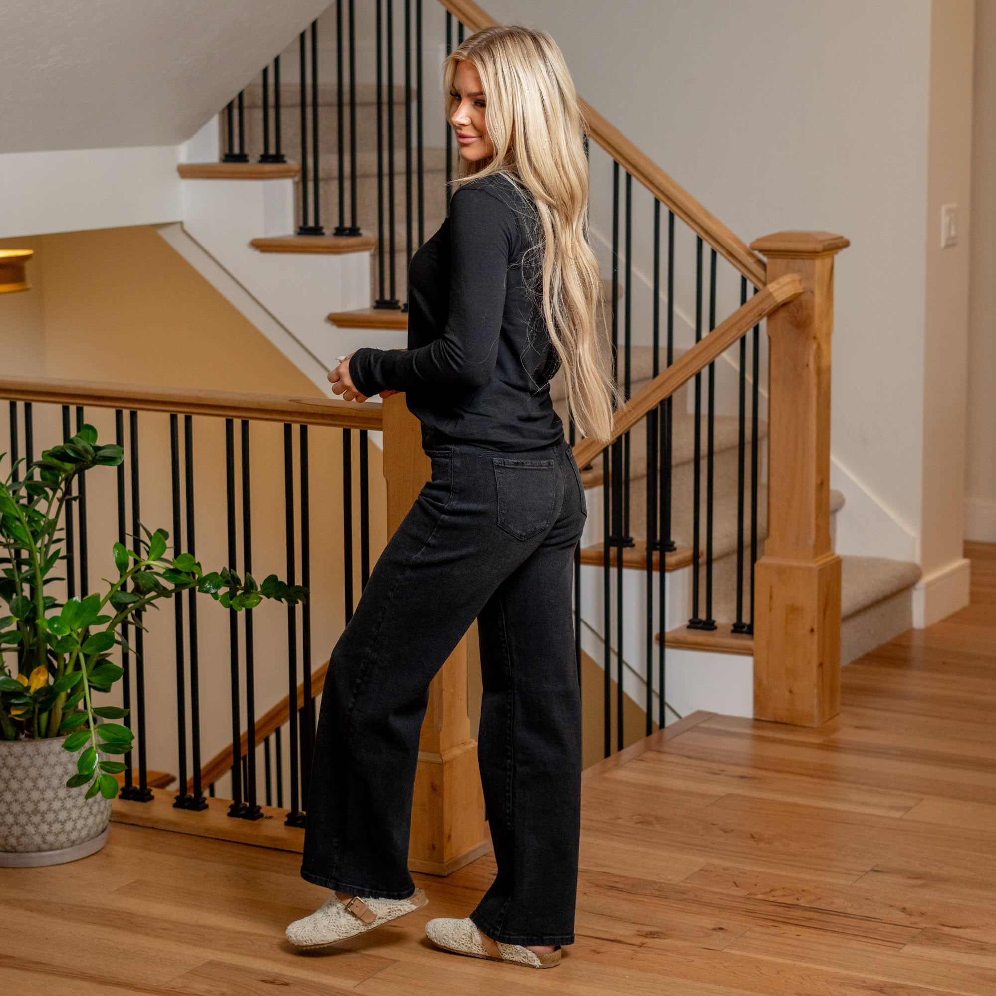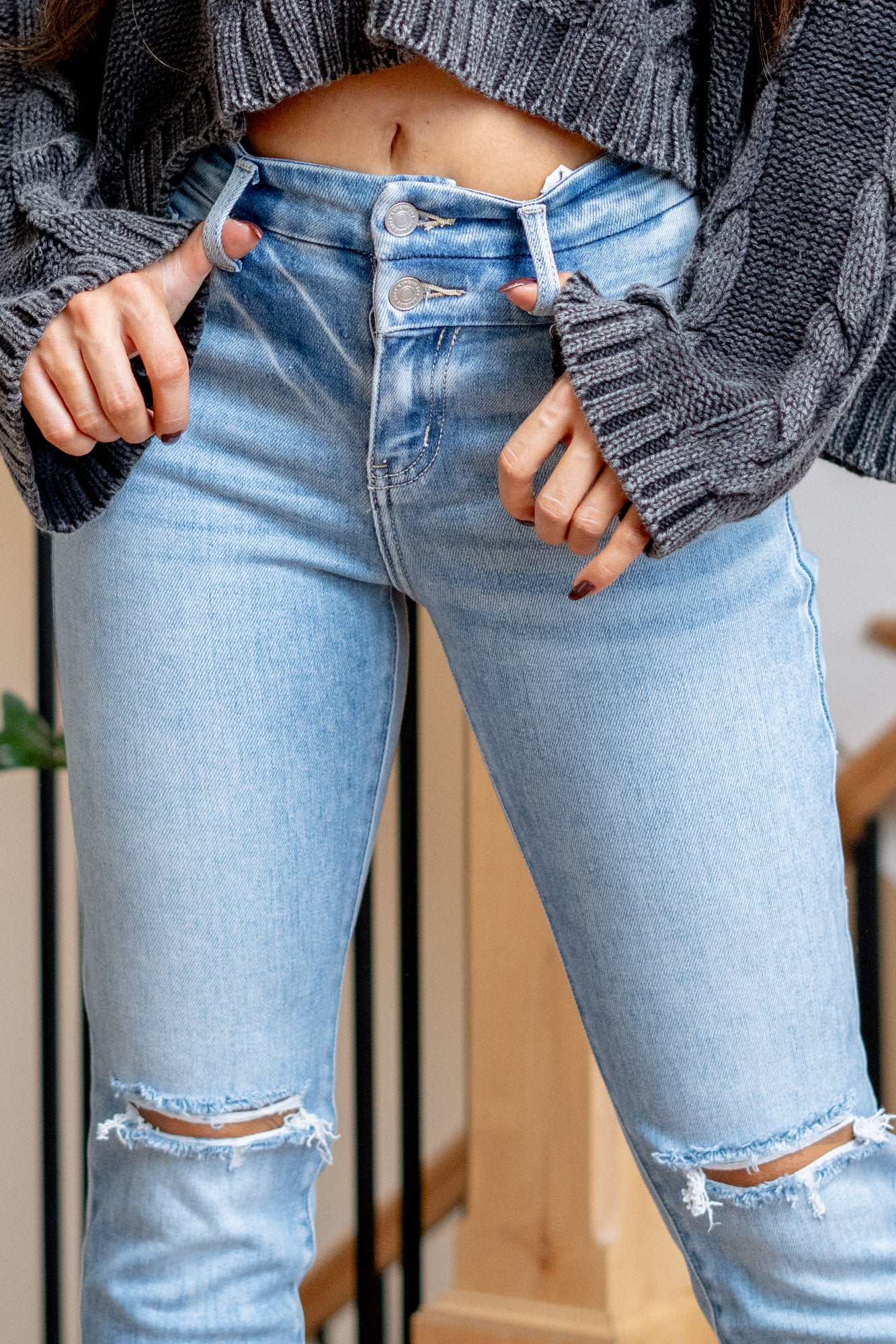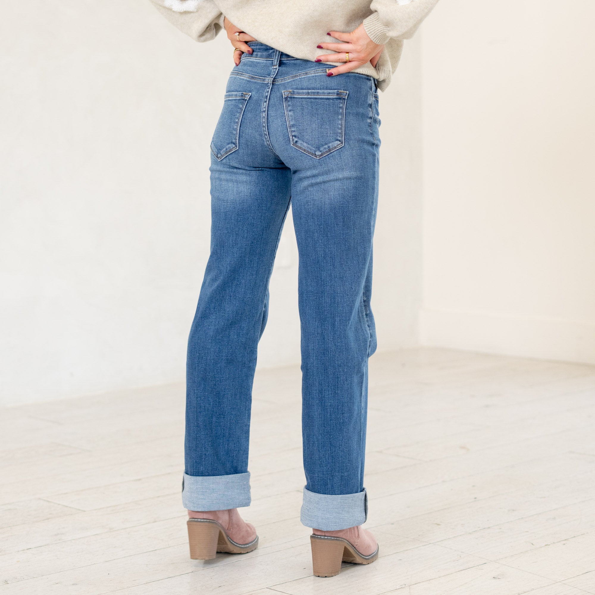 KanCan Ivanna High Rise Wide Leg Jeans Medium Blue Wash