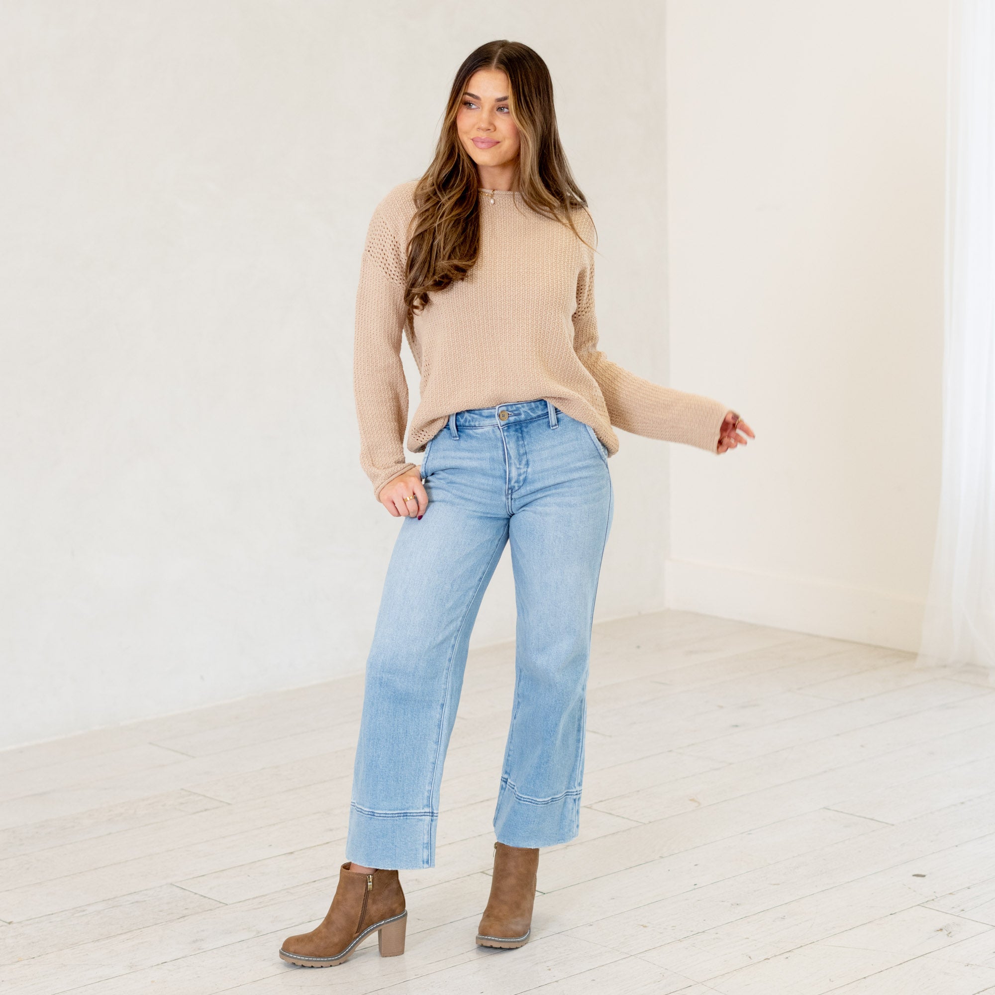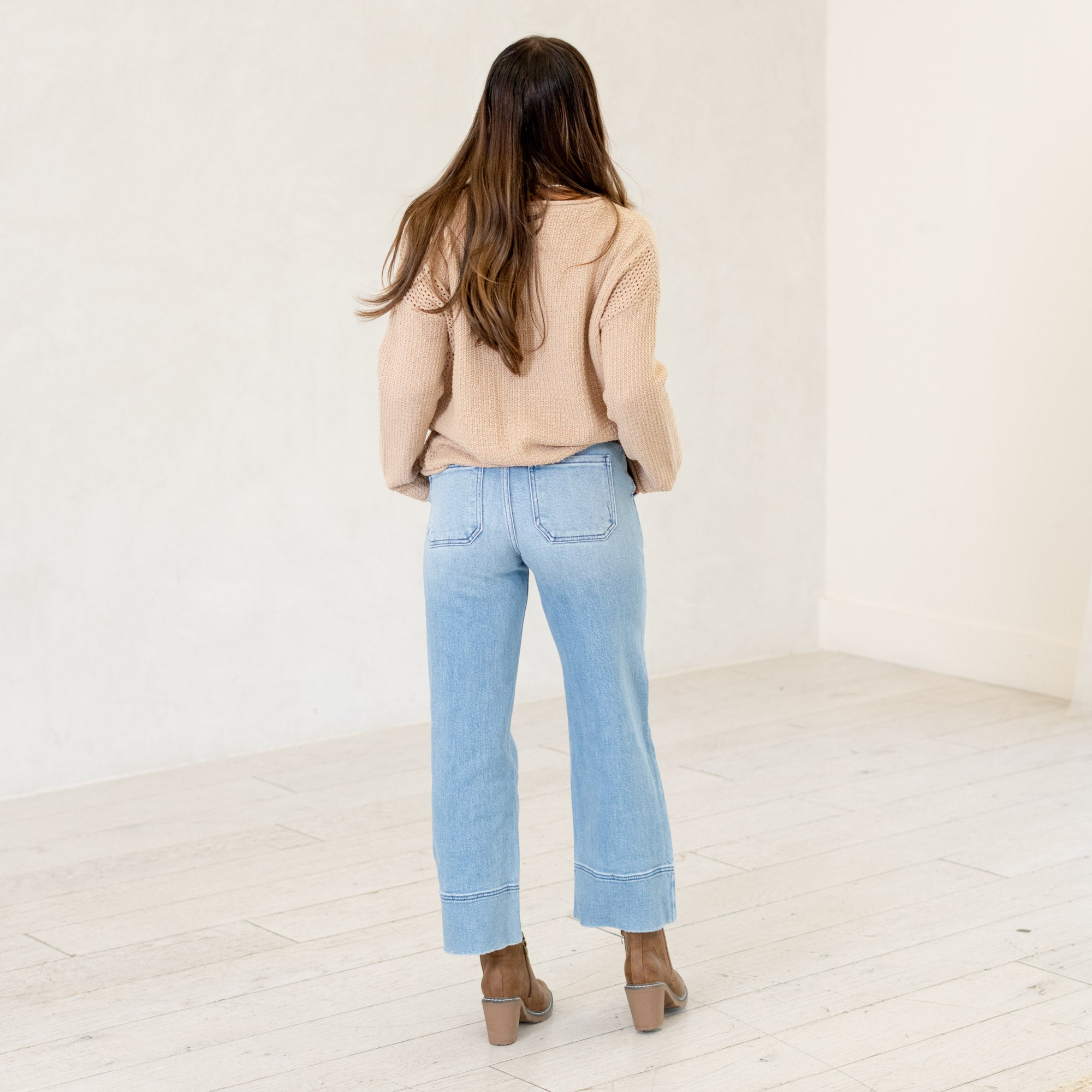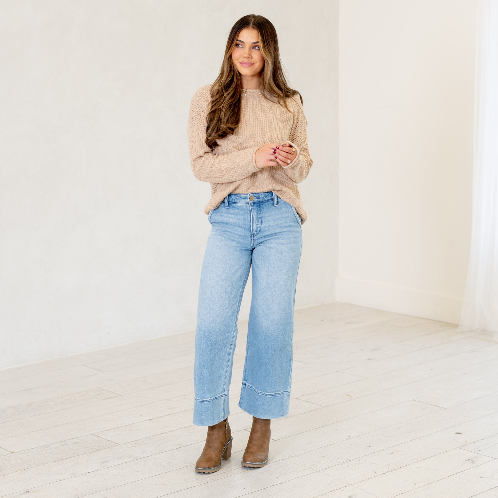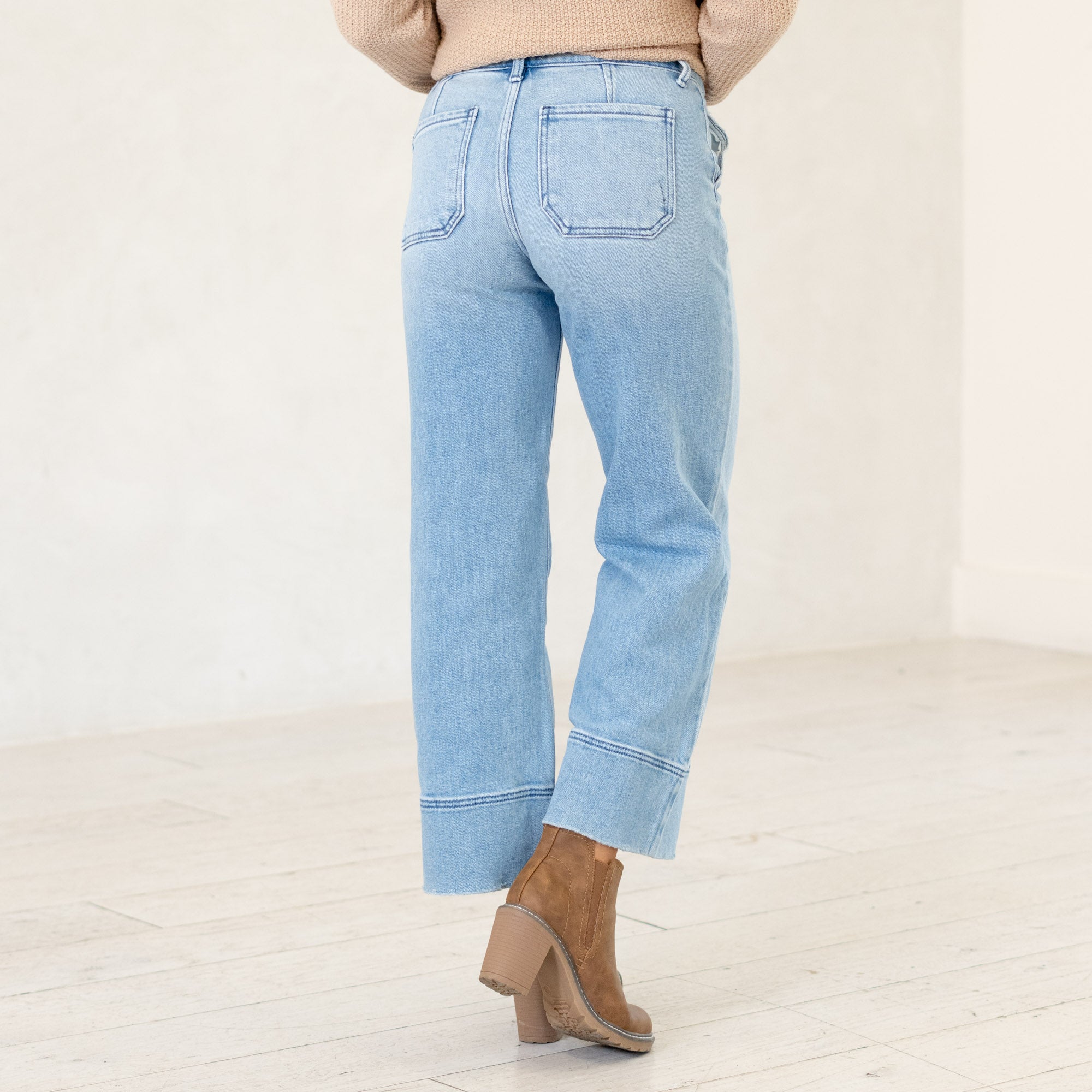 KanCan Darla High Rise Cropped Wide Leg Jeans Medium Blue Wash