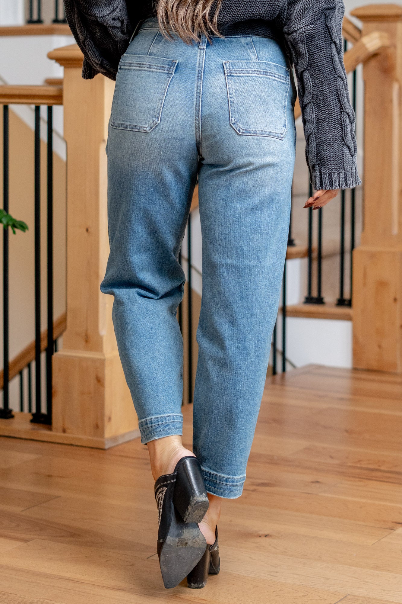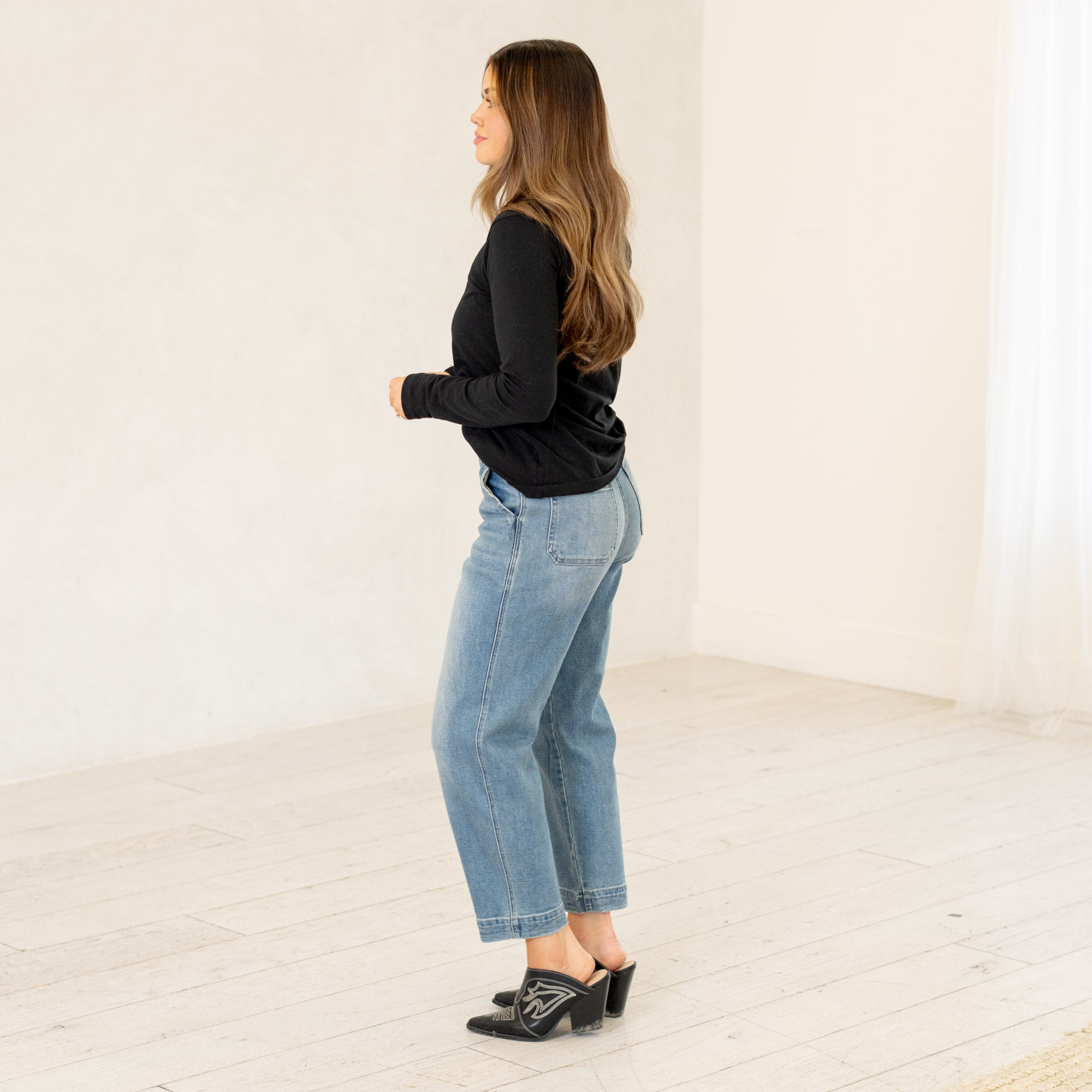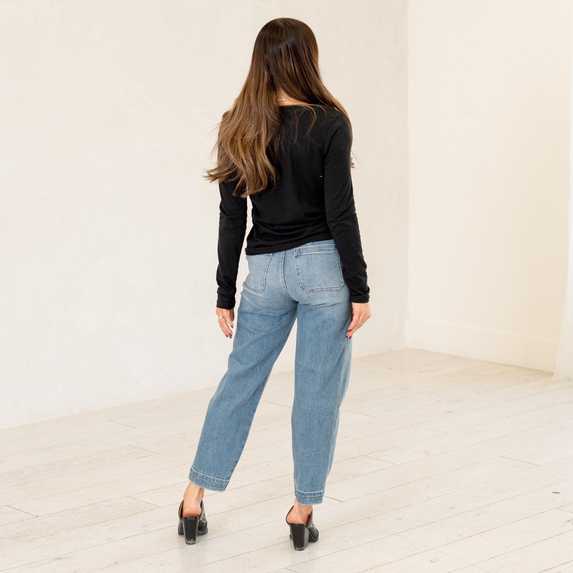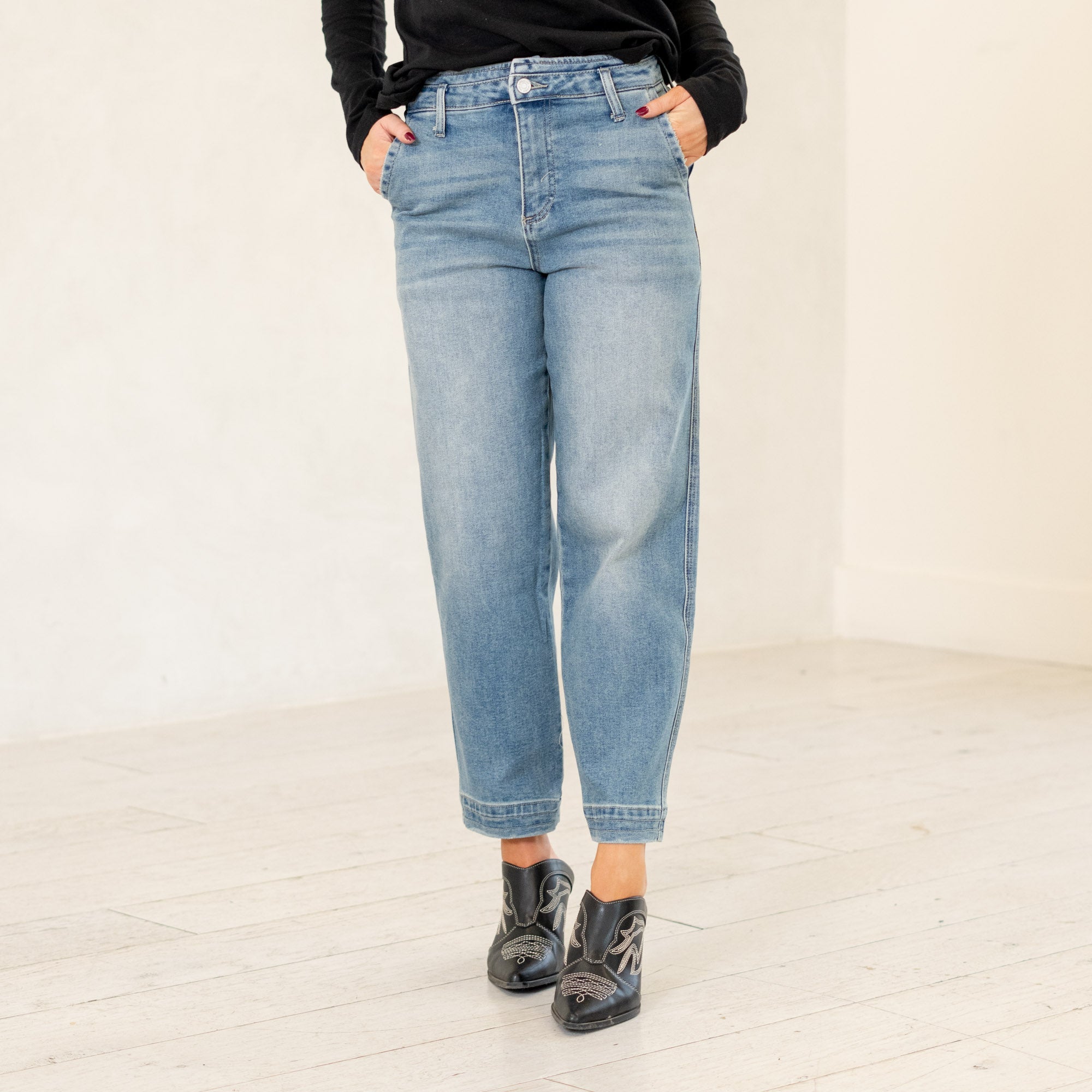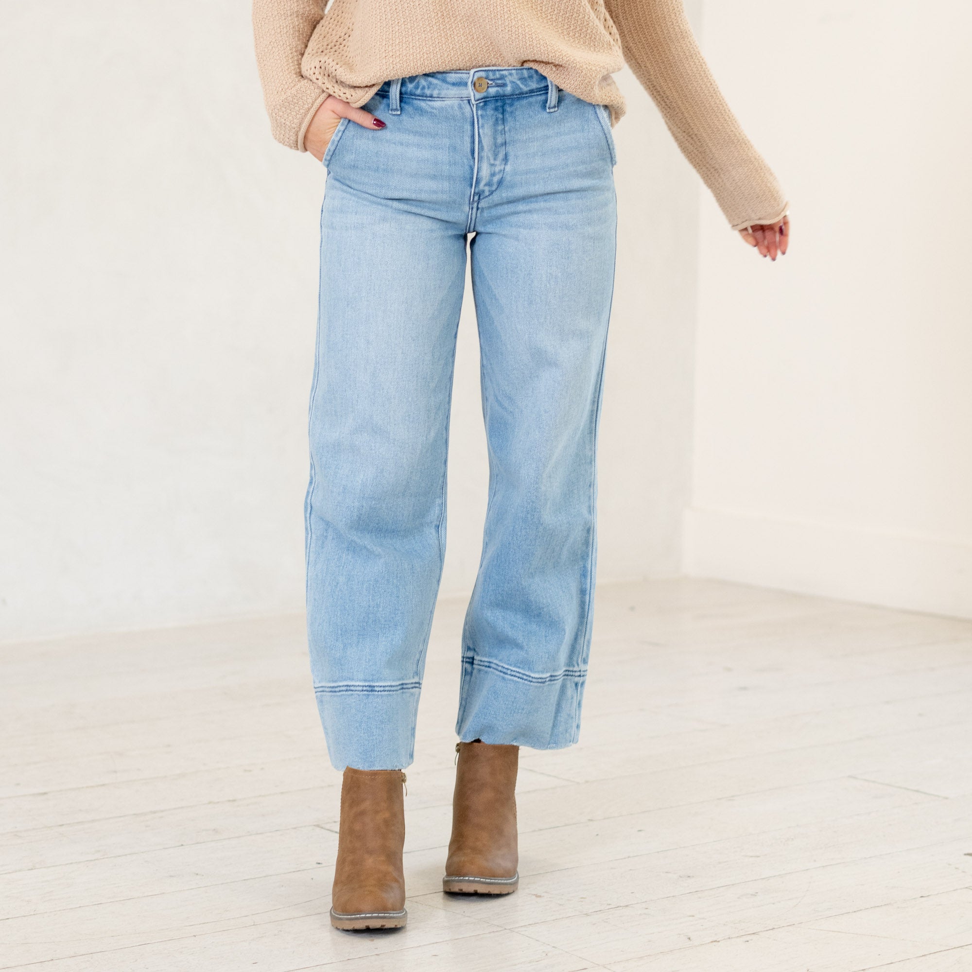 KanCan Darla High Rise Cropped Wide Leg Jeans Medium Blue Wash