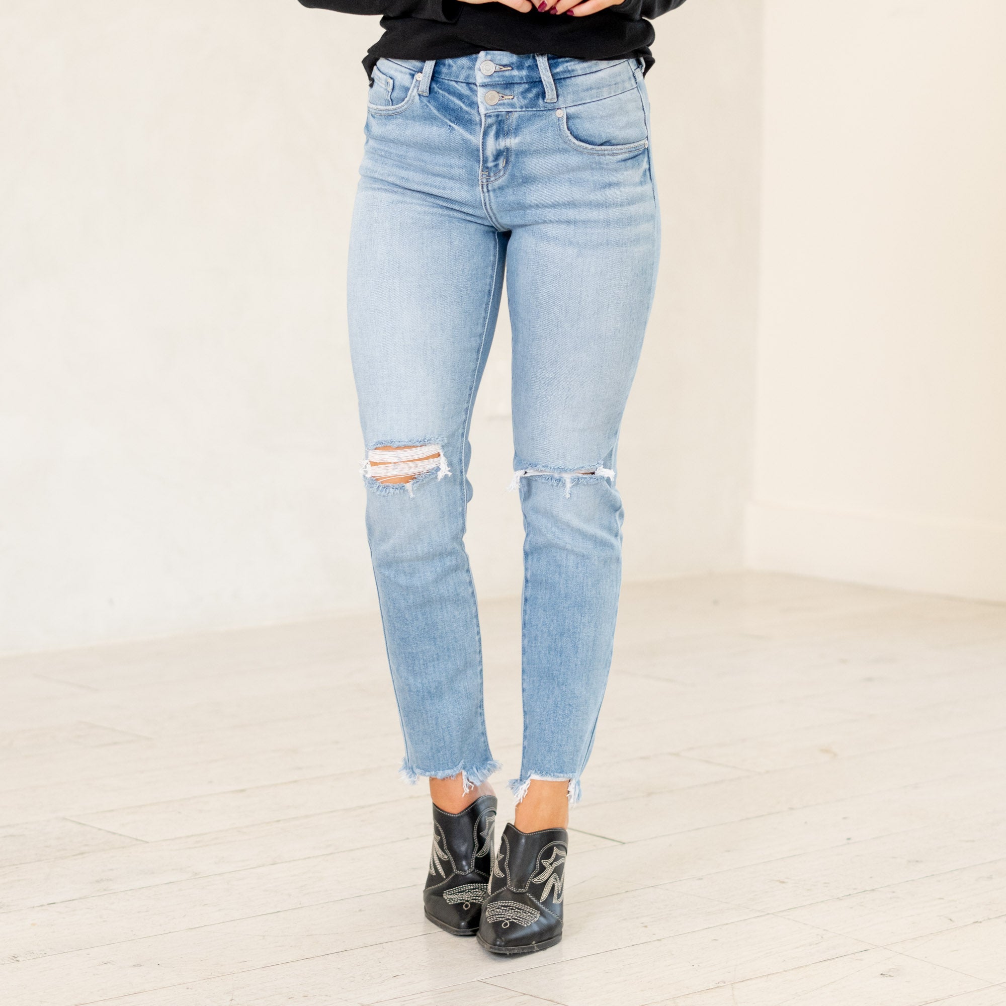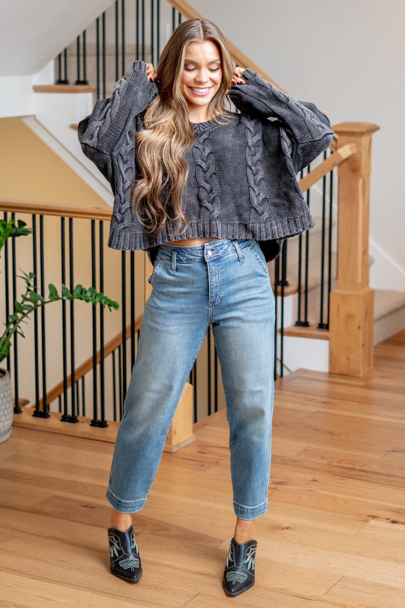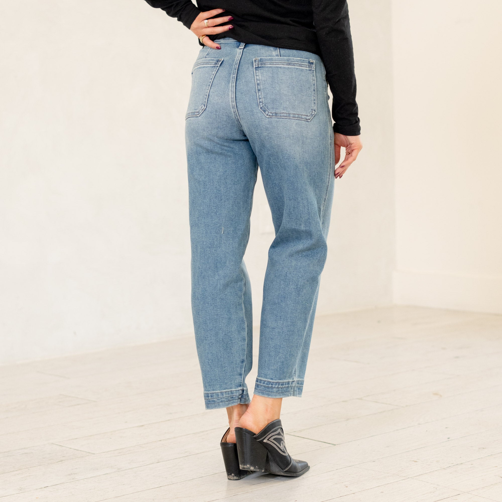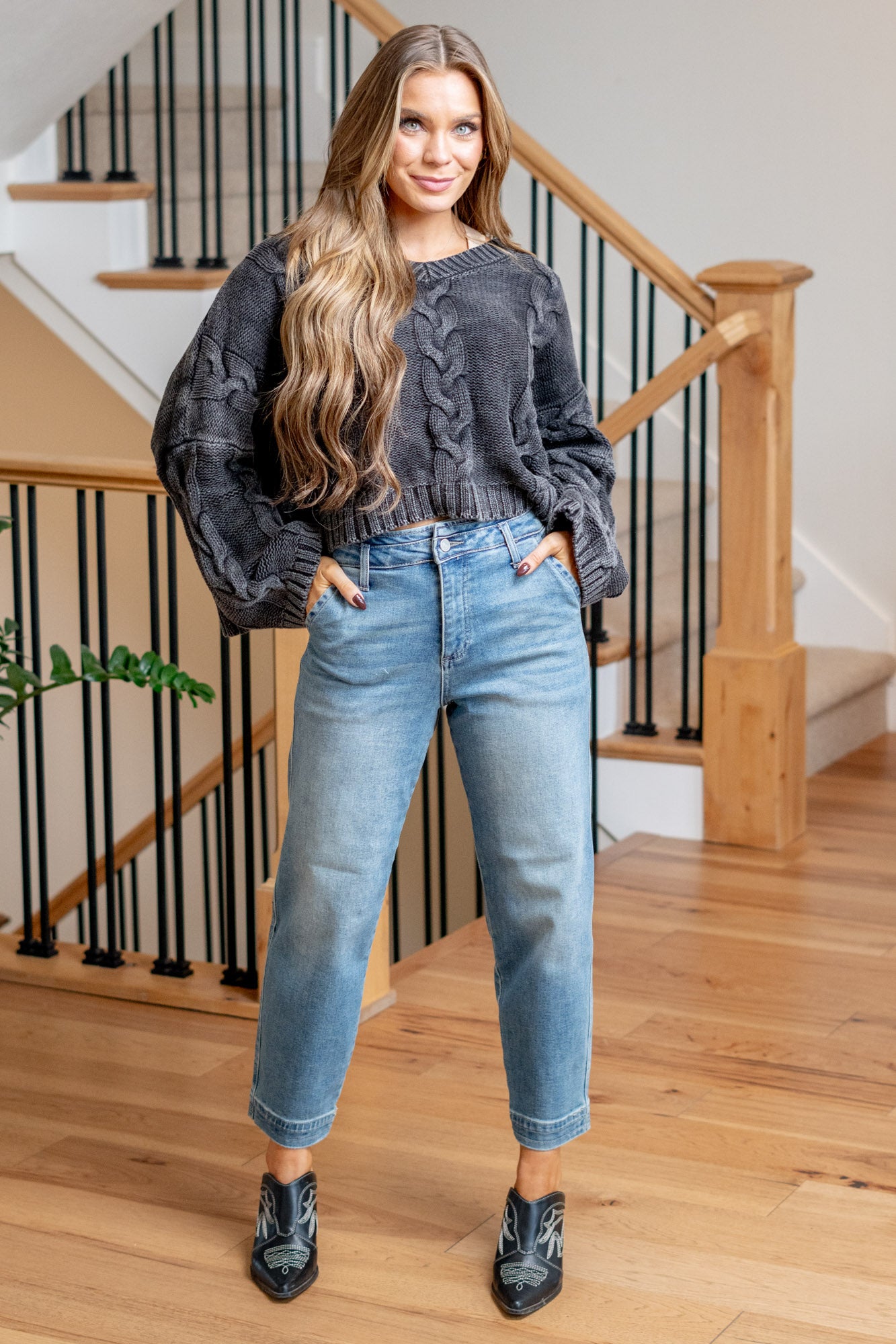 KanCan Darla High Rise Cropped Wide Leg Jeans Medium Blue Wash