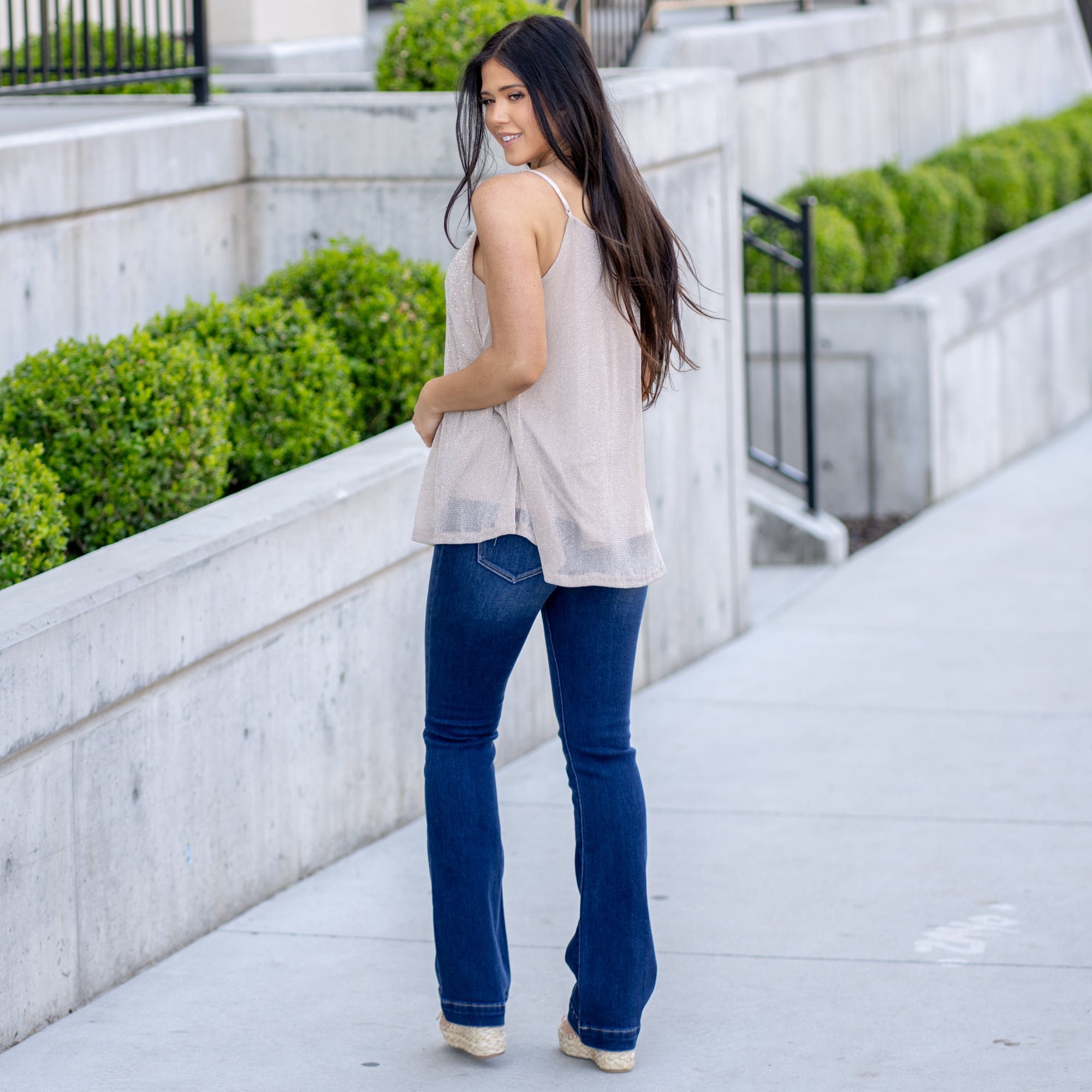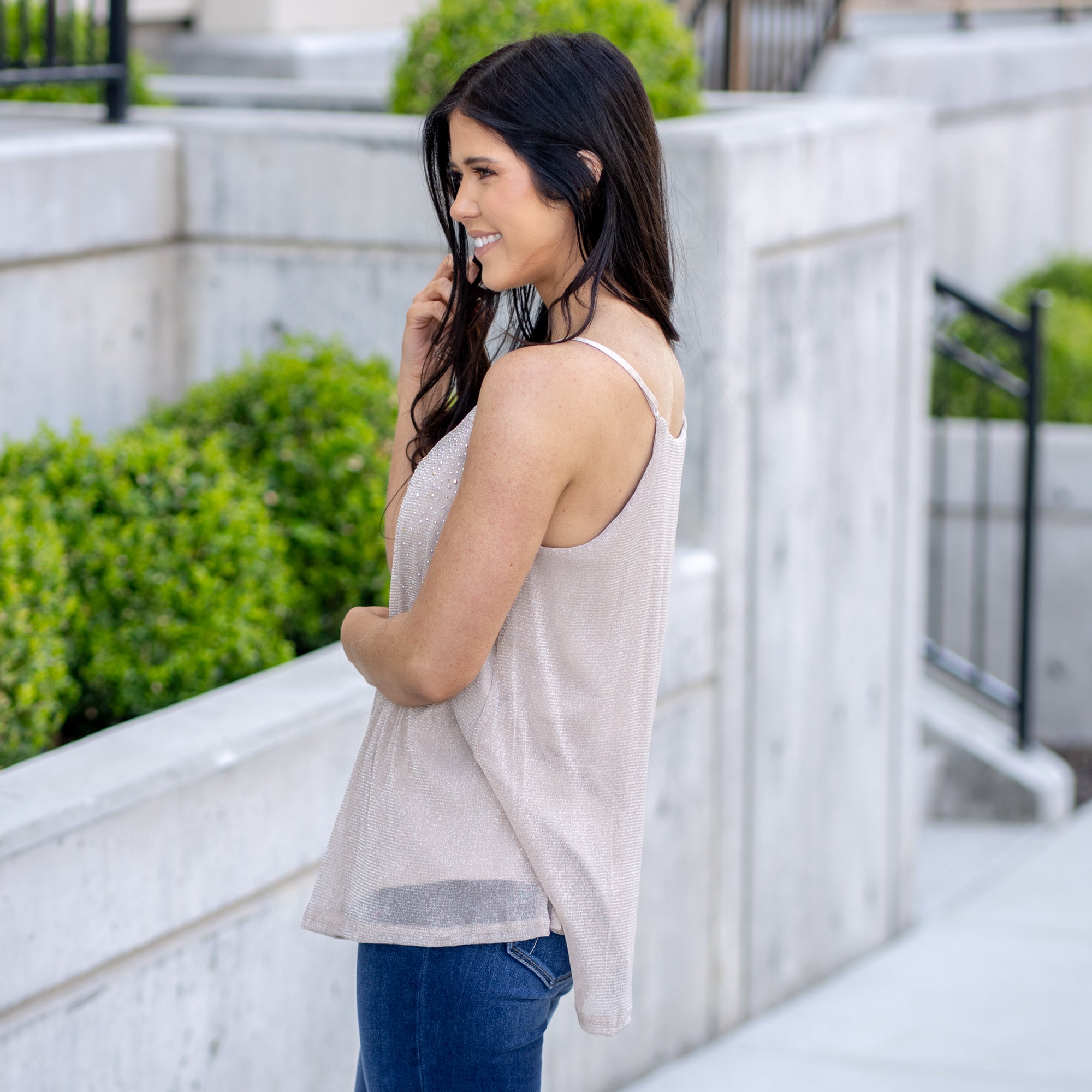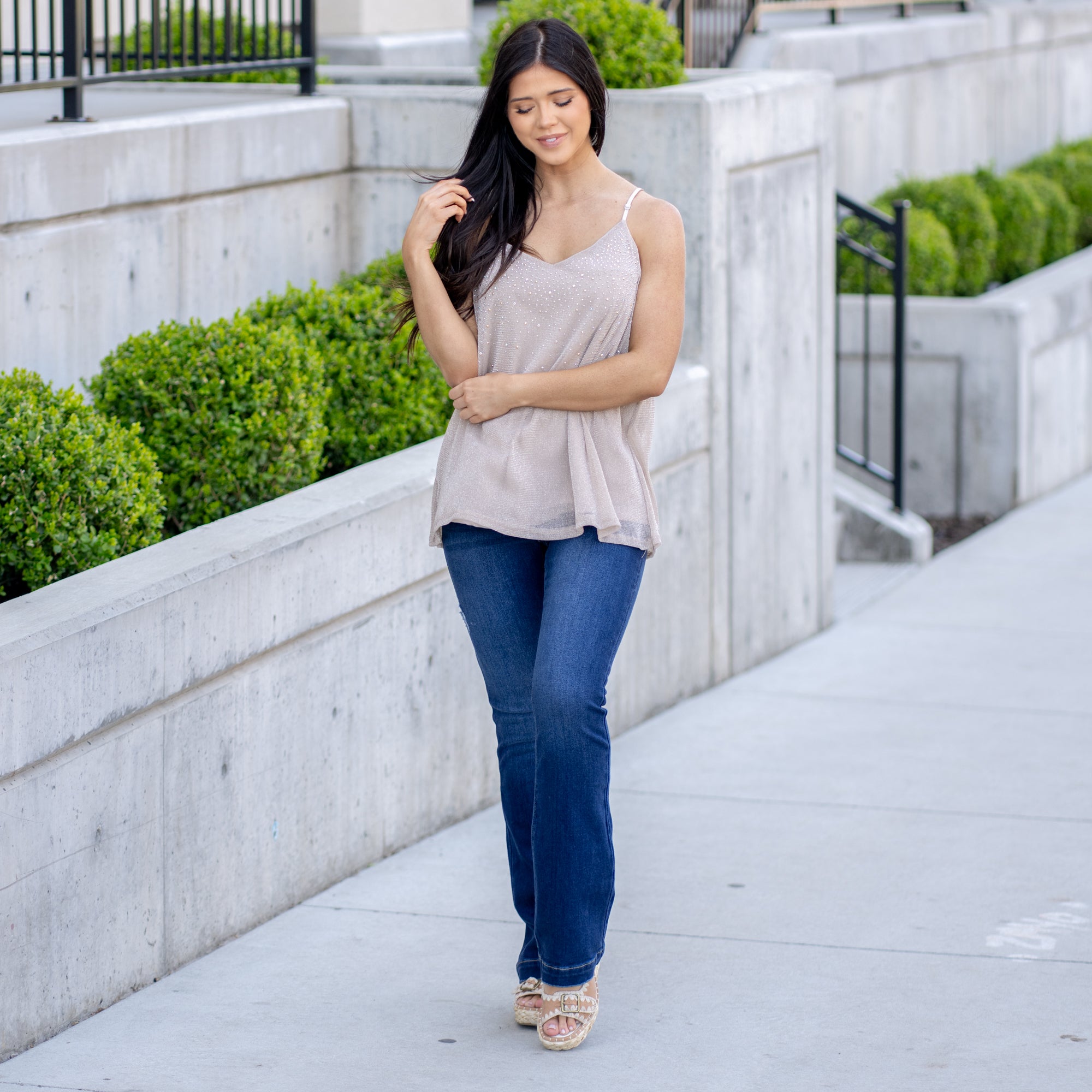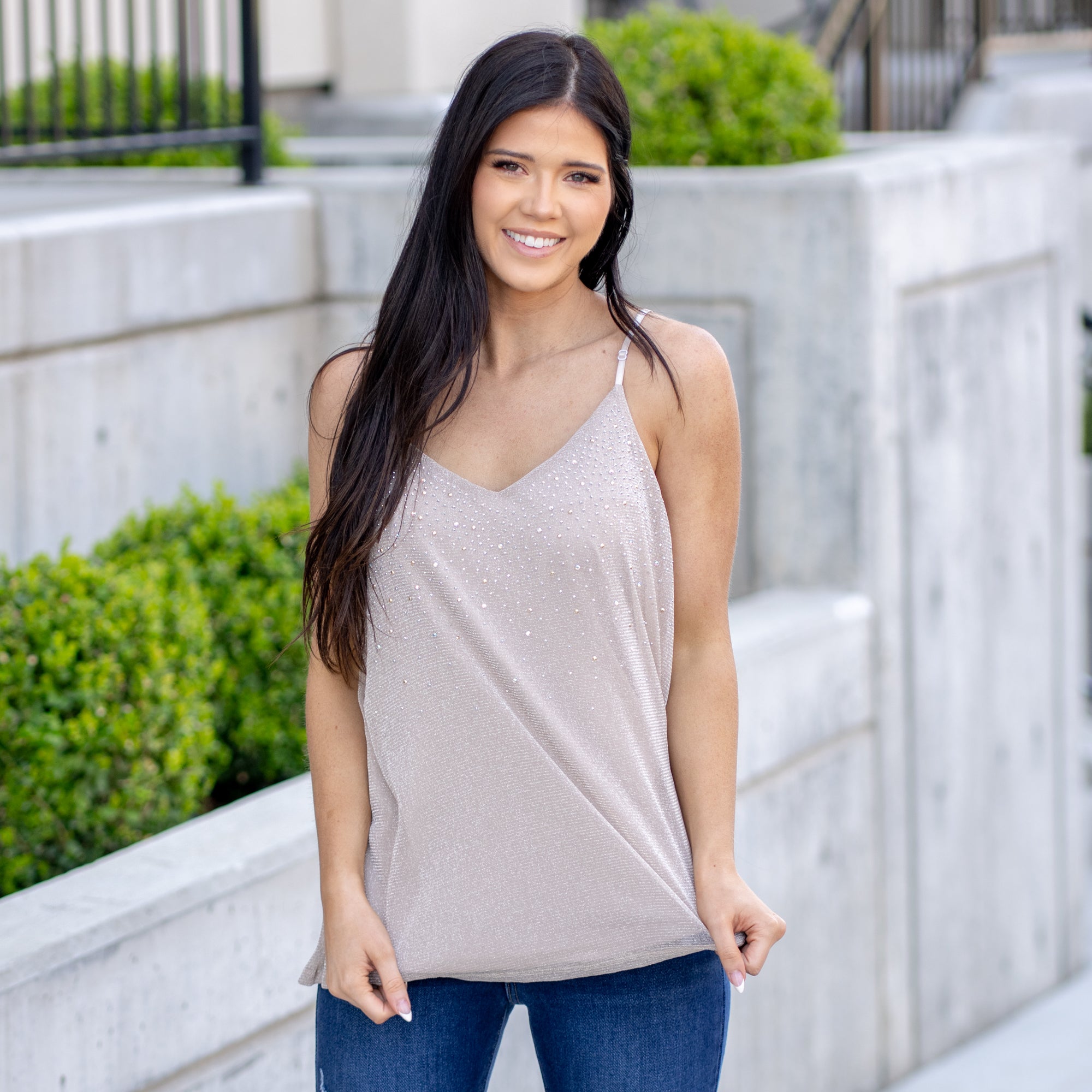 Glitter Mesh Tank Top - Tan