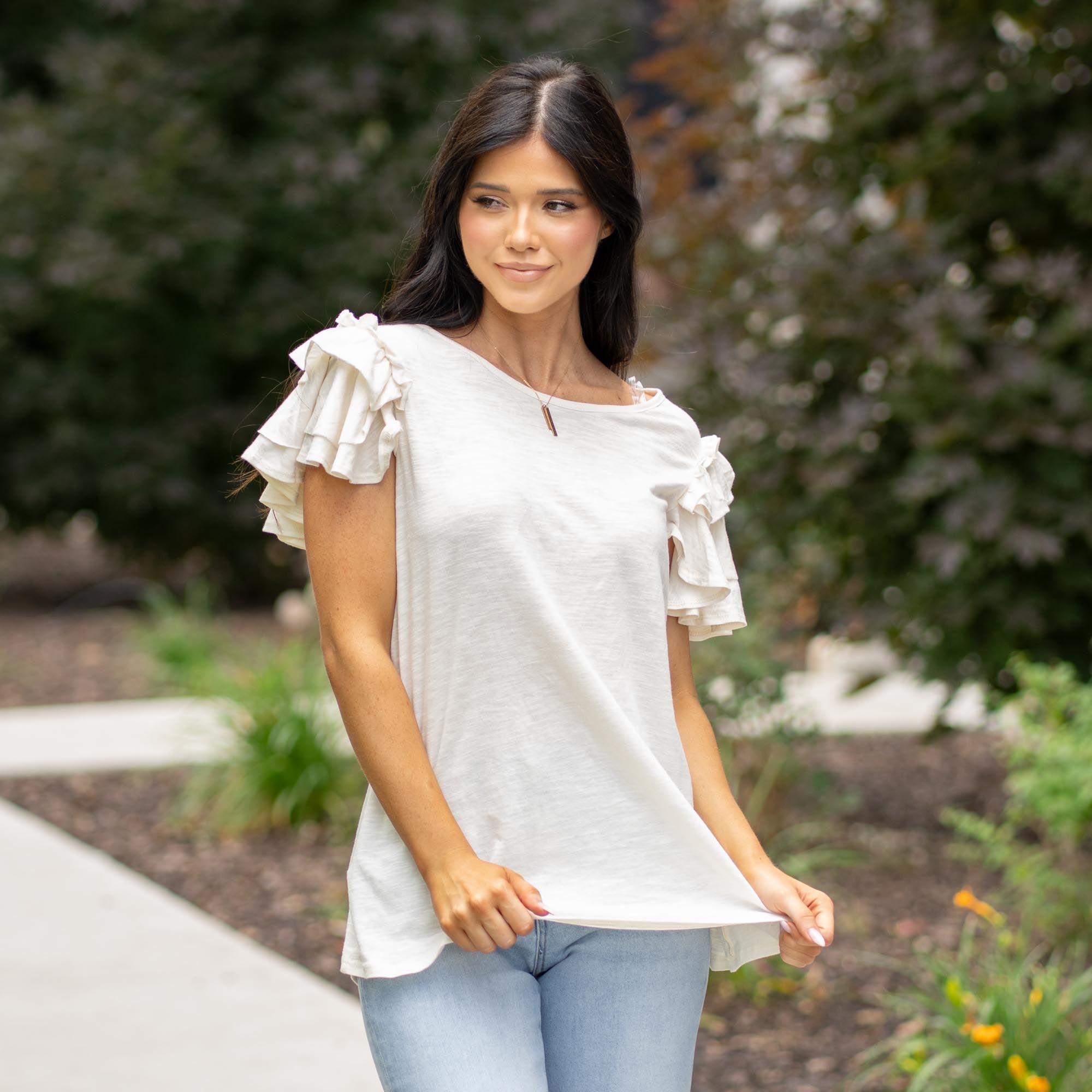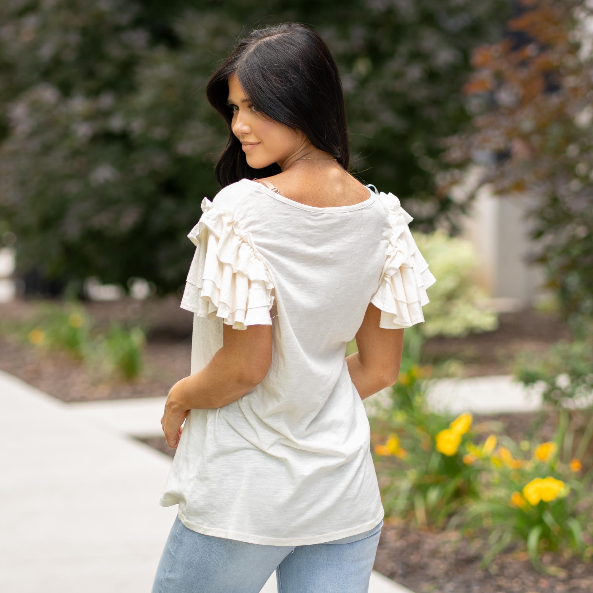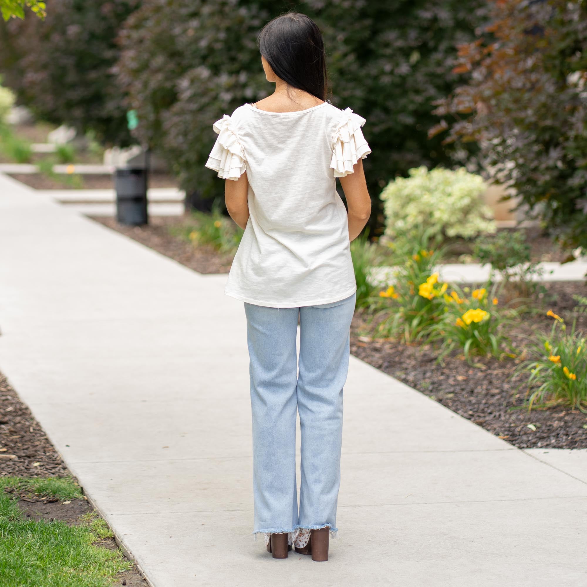 Hem & Thread Celeste Lace Edge Pointelle Knit Top Black