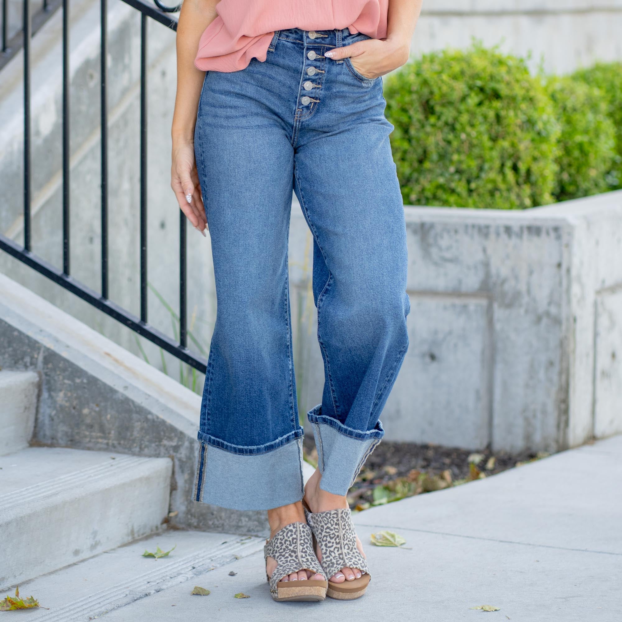 KanCan Holly High Rise Trouser Hem Flare Jeans Medium Blue Wash
