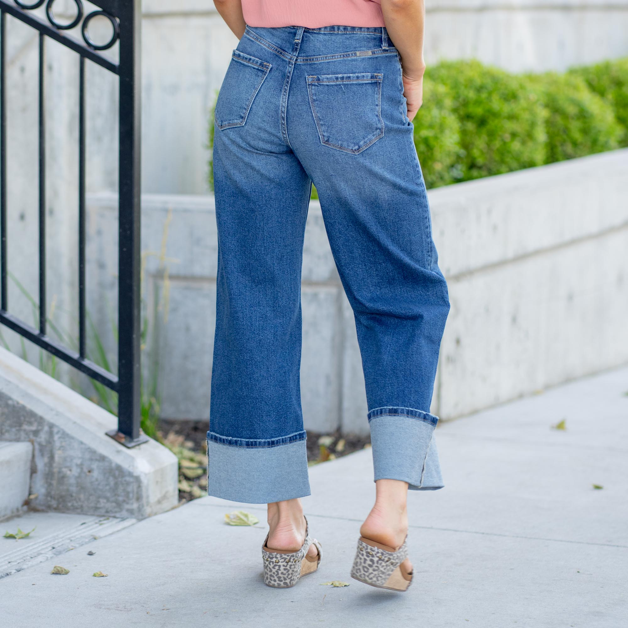 KanCan Gemma Mid Rise Wide Leg Dark Blue Wash