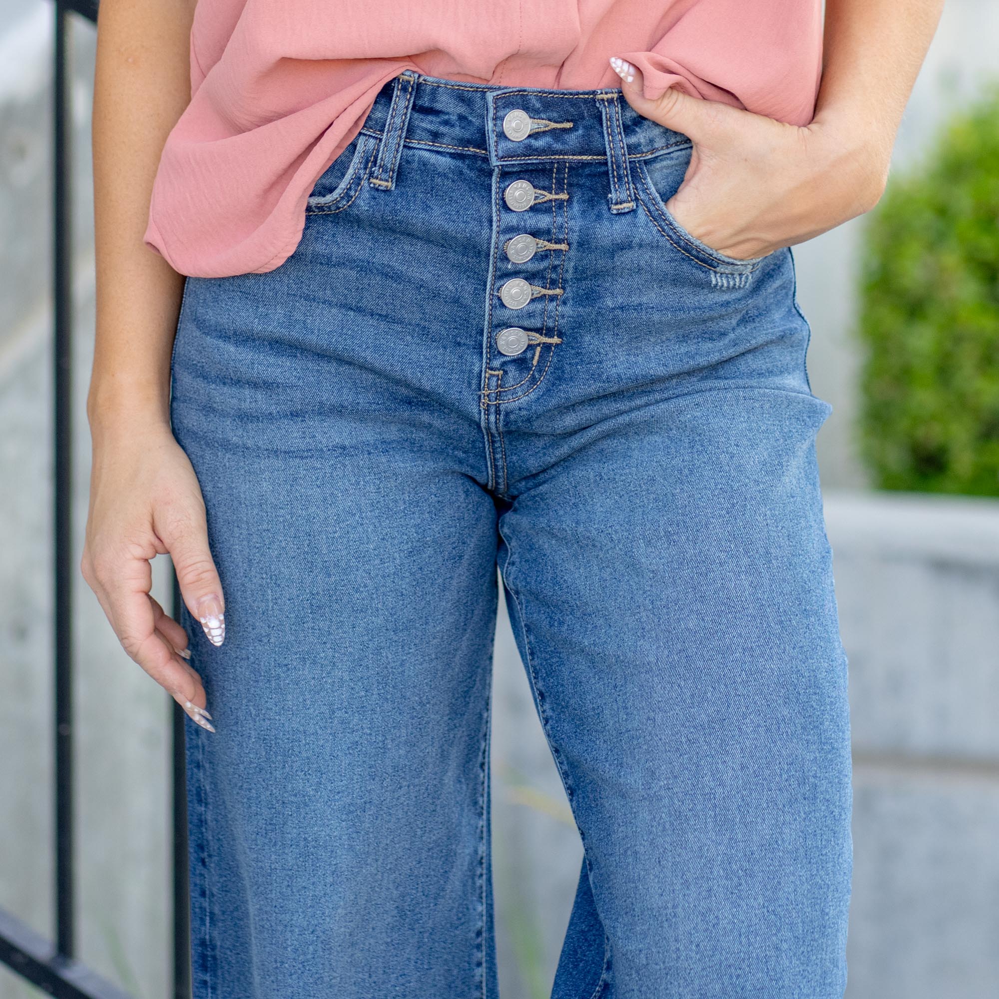 KanCan Hannah Mid Rise Straight Leg Pink