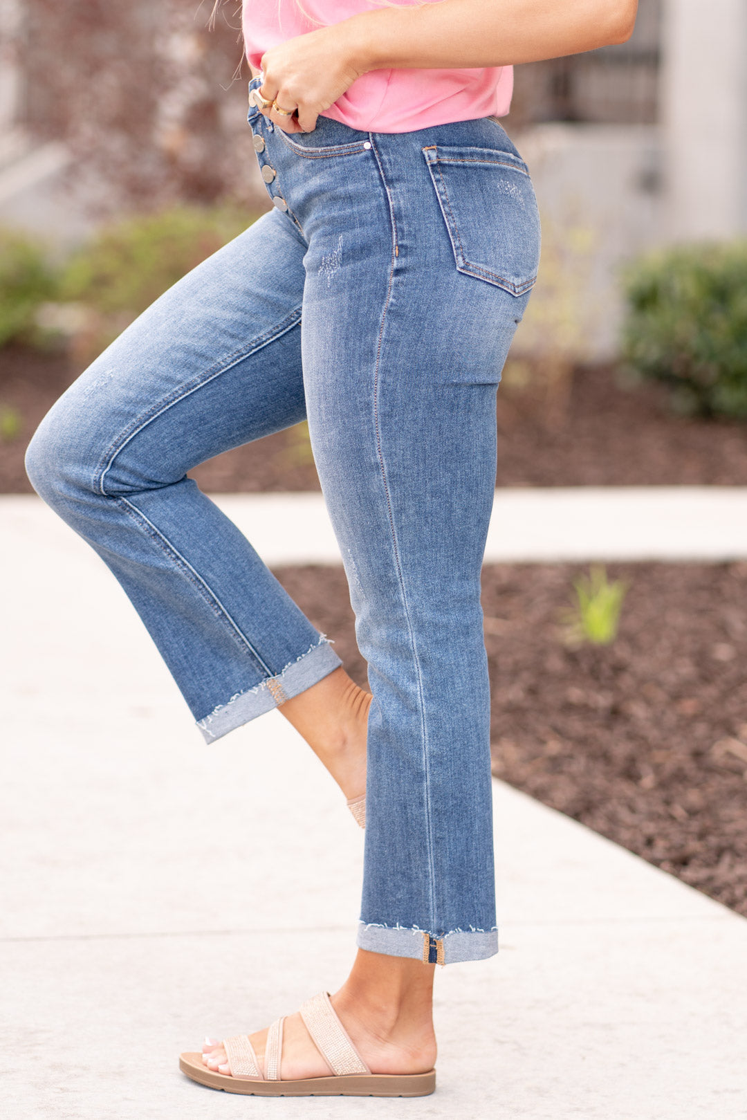 Lazy Afternoons Button Fly Cropped Bootcut Jeans Regular & Plus Sizes
