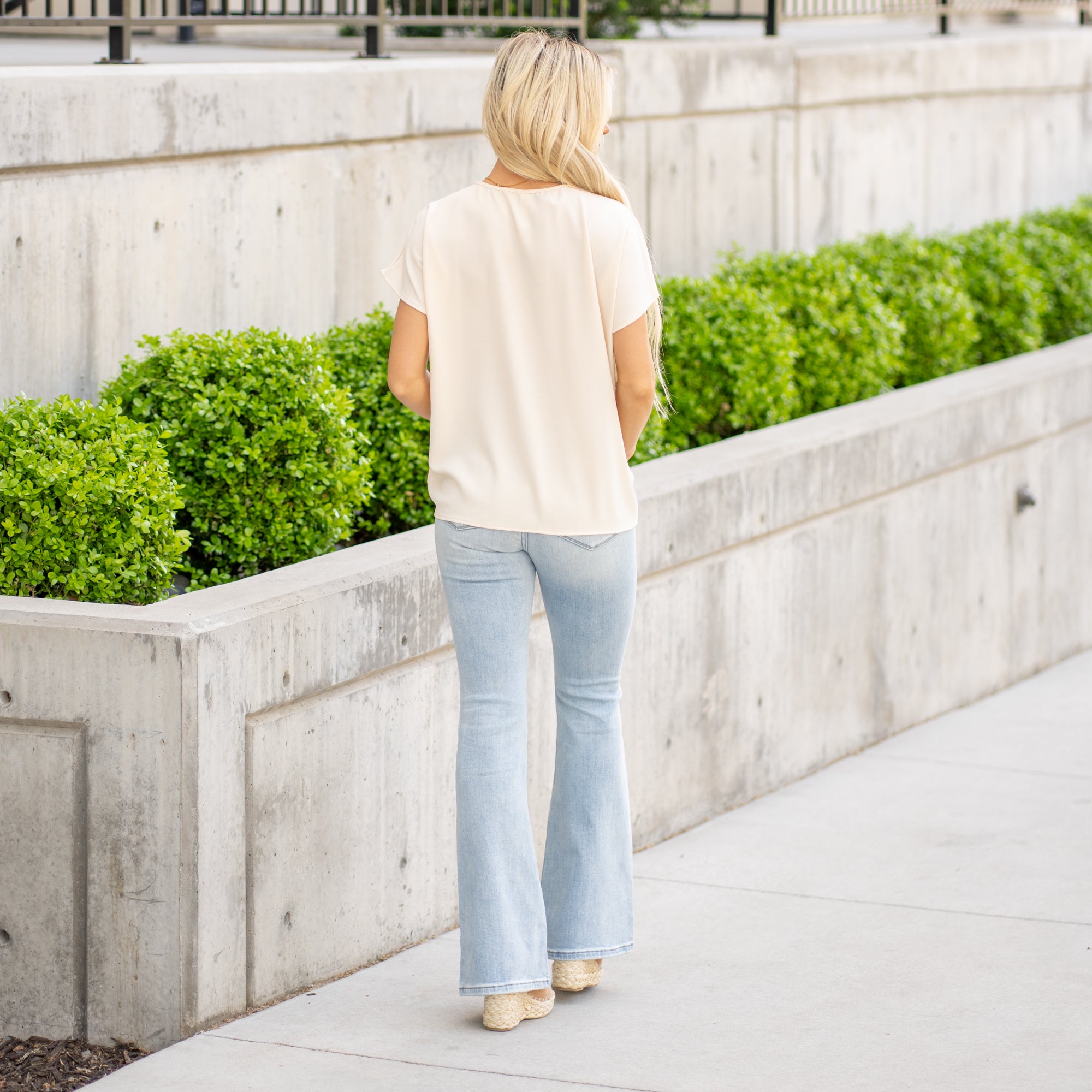 Ribbed V-Neck Exposed Seam Top Regular & Plus Sizes