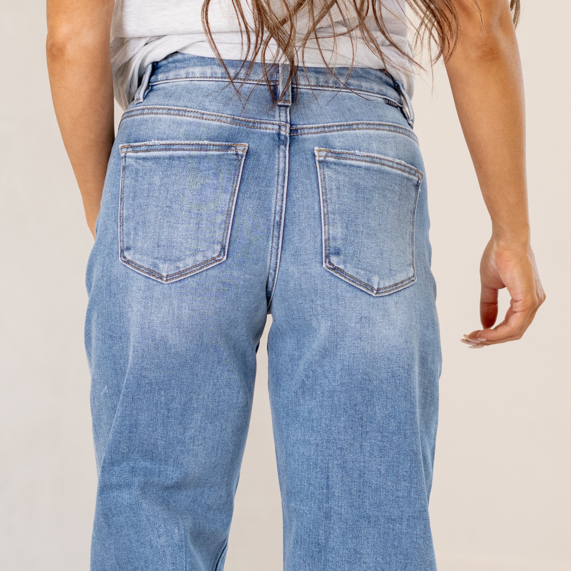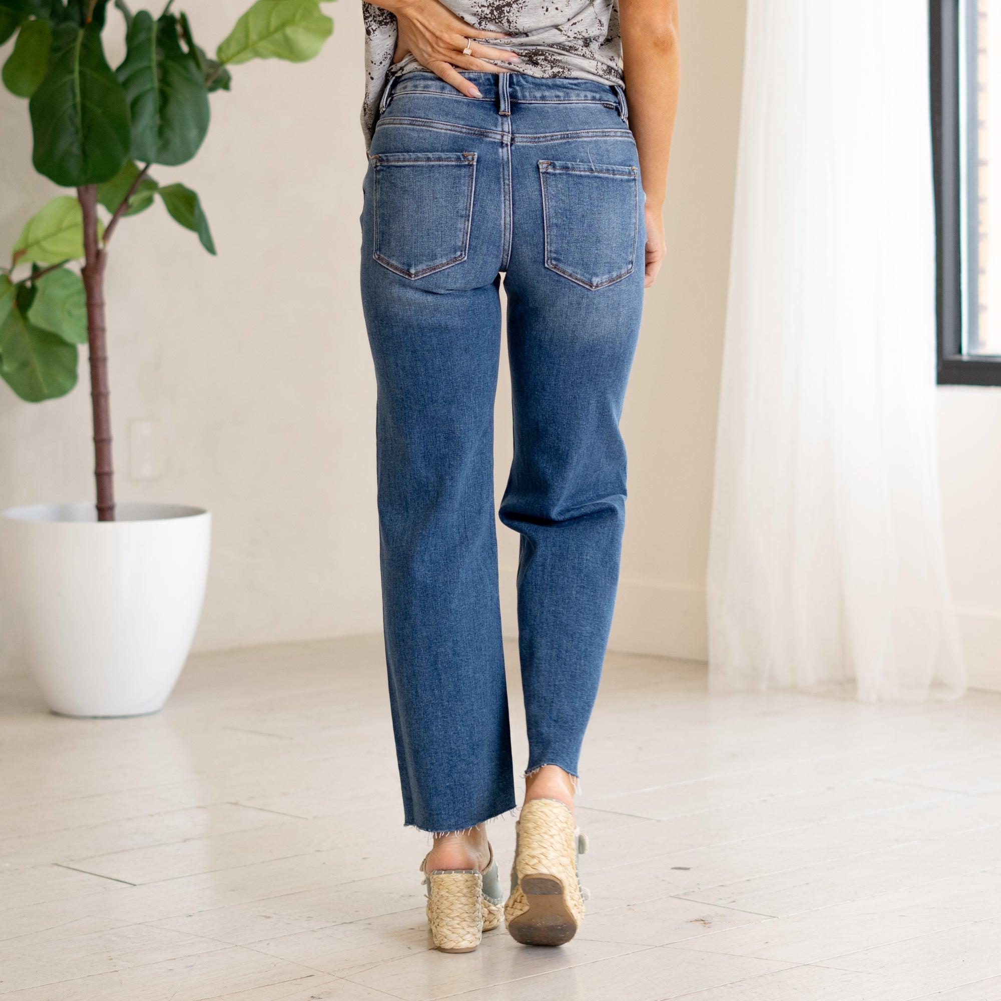 Risen Rain or Shine High Rise Crop Straight Leg Jeans Medium Blue Wash