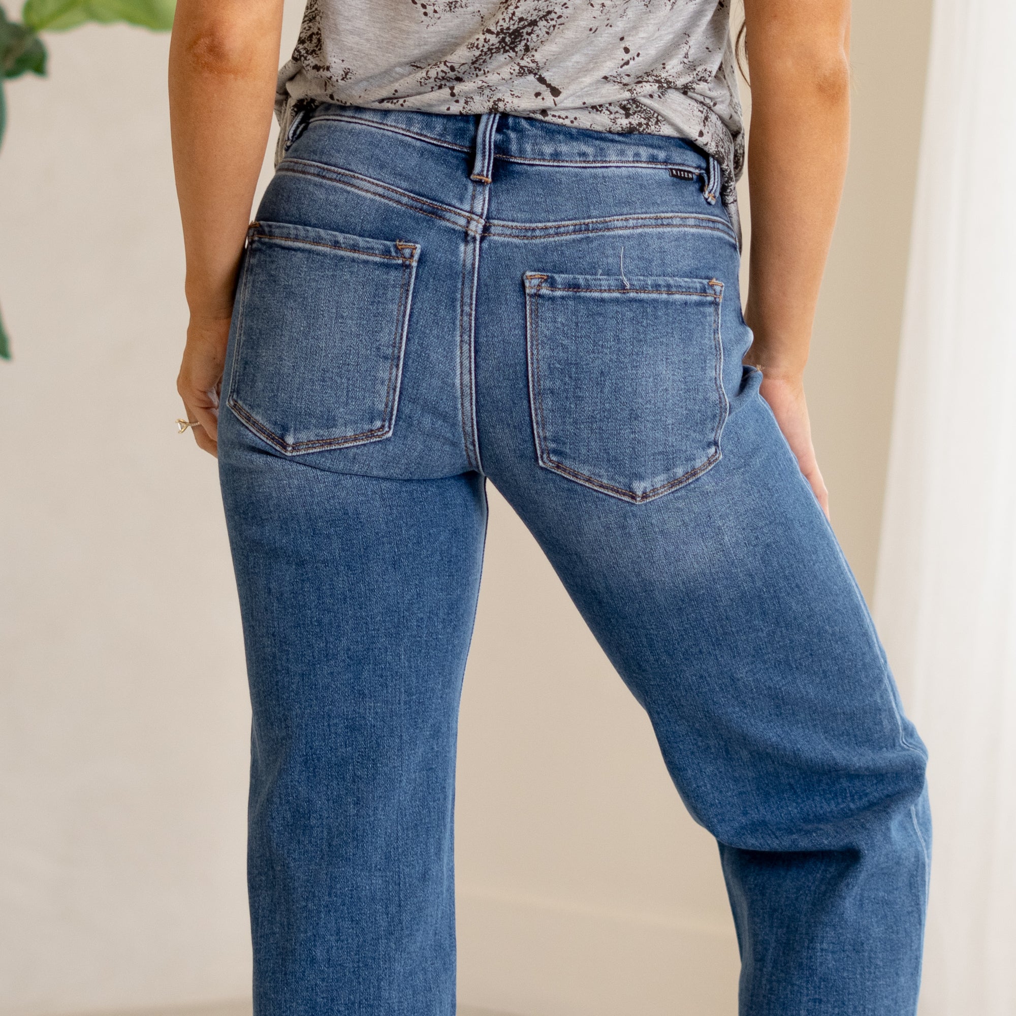 Risen Bella Mid Rise Straight Fit Jeans Medium Blue Wash