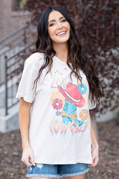 Zutter Floral Longhorn Western Vintage Graphic Top Pink