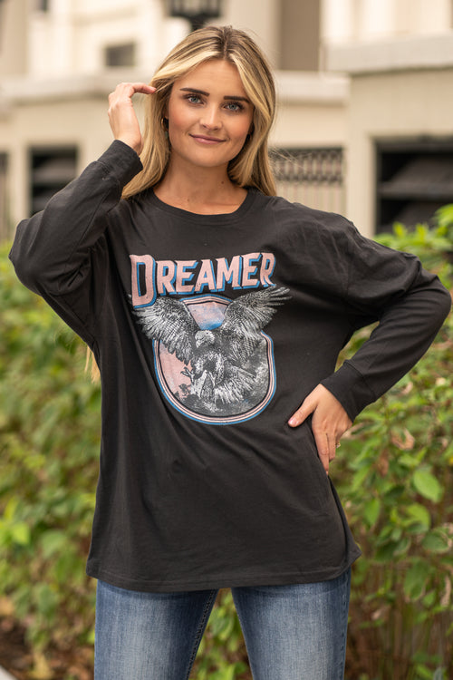Wild Free Sweet Heart Oversized Graphic Long Sleeve T-Shirt Black