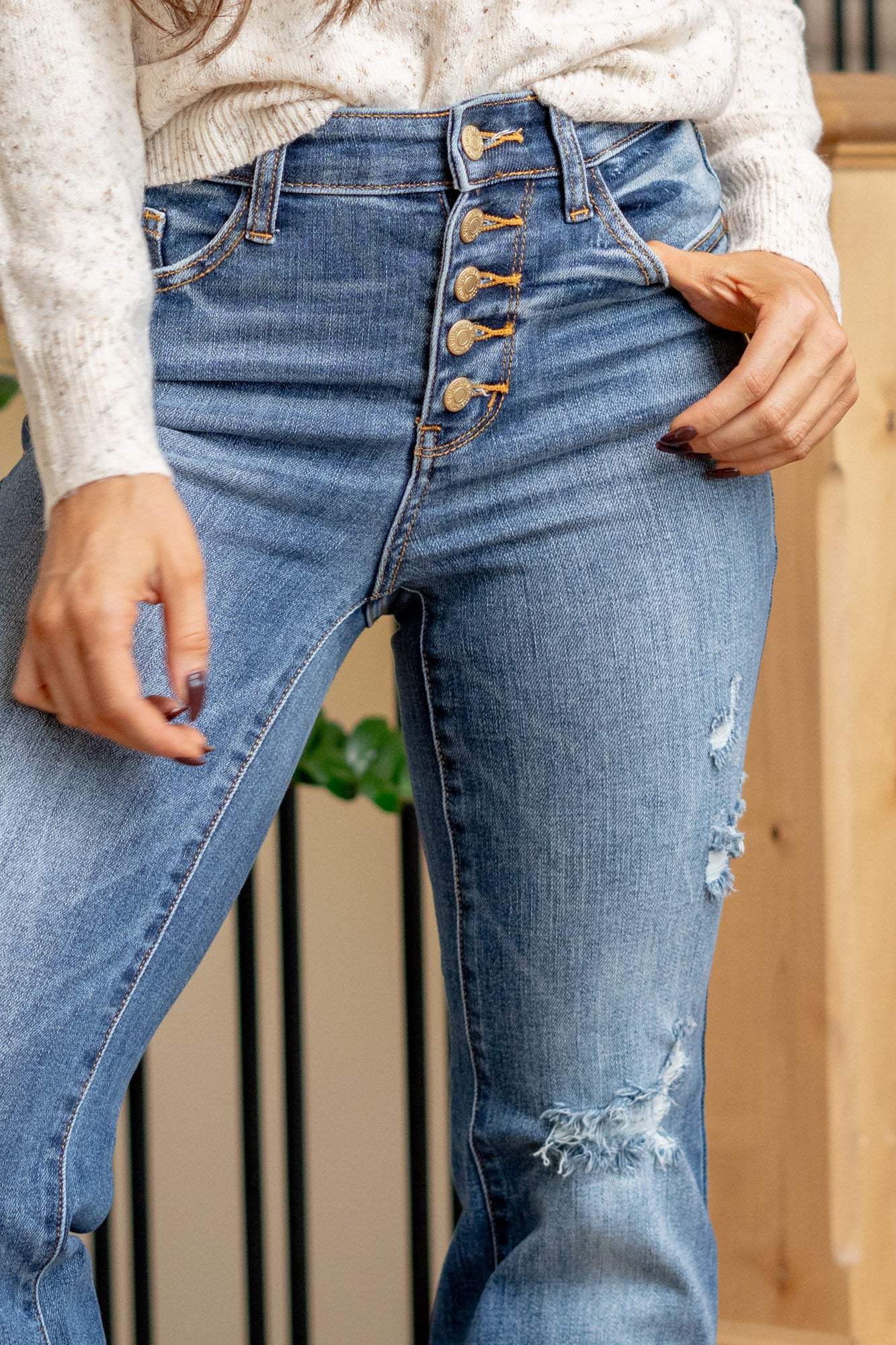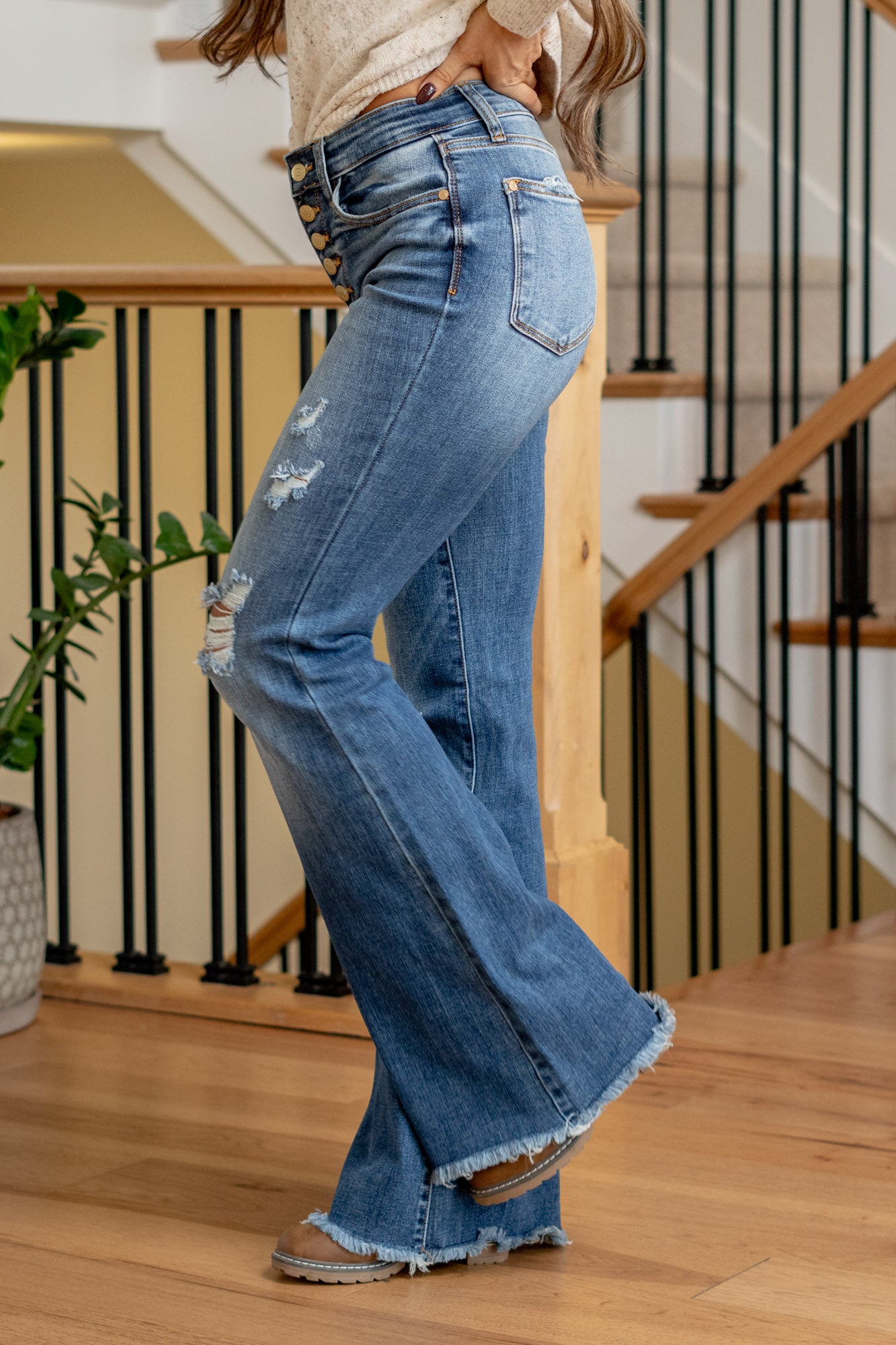 Judy Blue Rustic River Mid Rise Button Fly Flares Regular & Plus Sizes