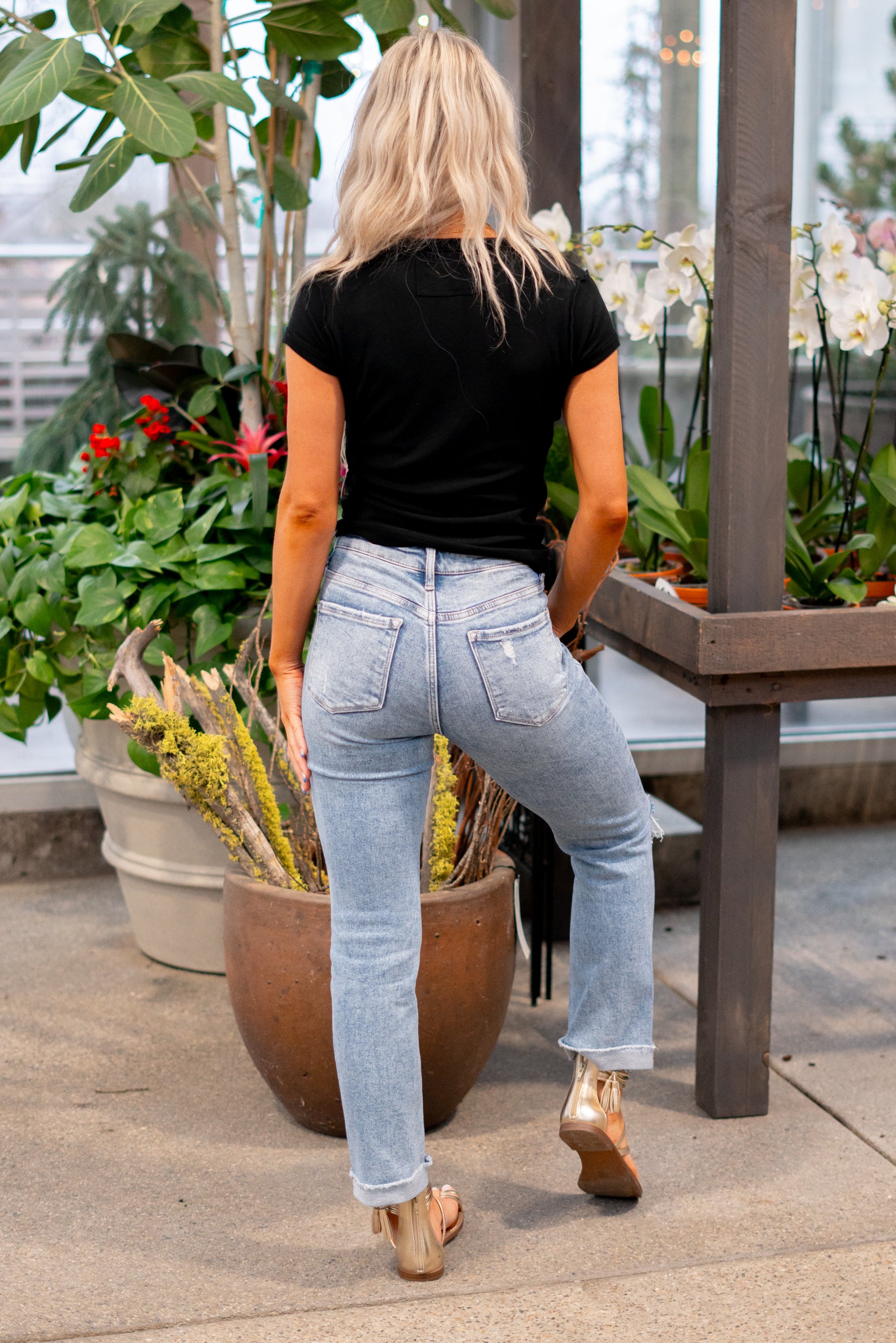 Introducing our Tummy Control Top High Rise Cuffed Slim Straight jeans, the perfect blend of comfort and style. These jeans feature a high rise waist with tummy control technology to give you a flattering silhouette. The slim straight fit offers a sleek and modern look, while the cuffed hem adds a touch of casual charm. Crafted with stretch denim, these jeans provide all-day comfort and flexibility. Whether you're running errands or heading out for a night on the town, these jeans will keep you looking and feeling your best.