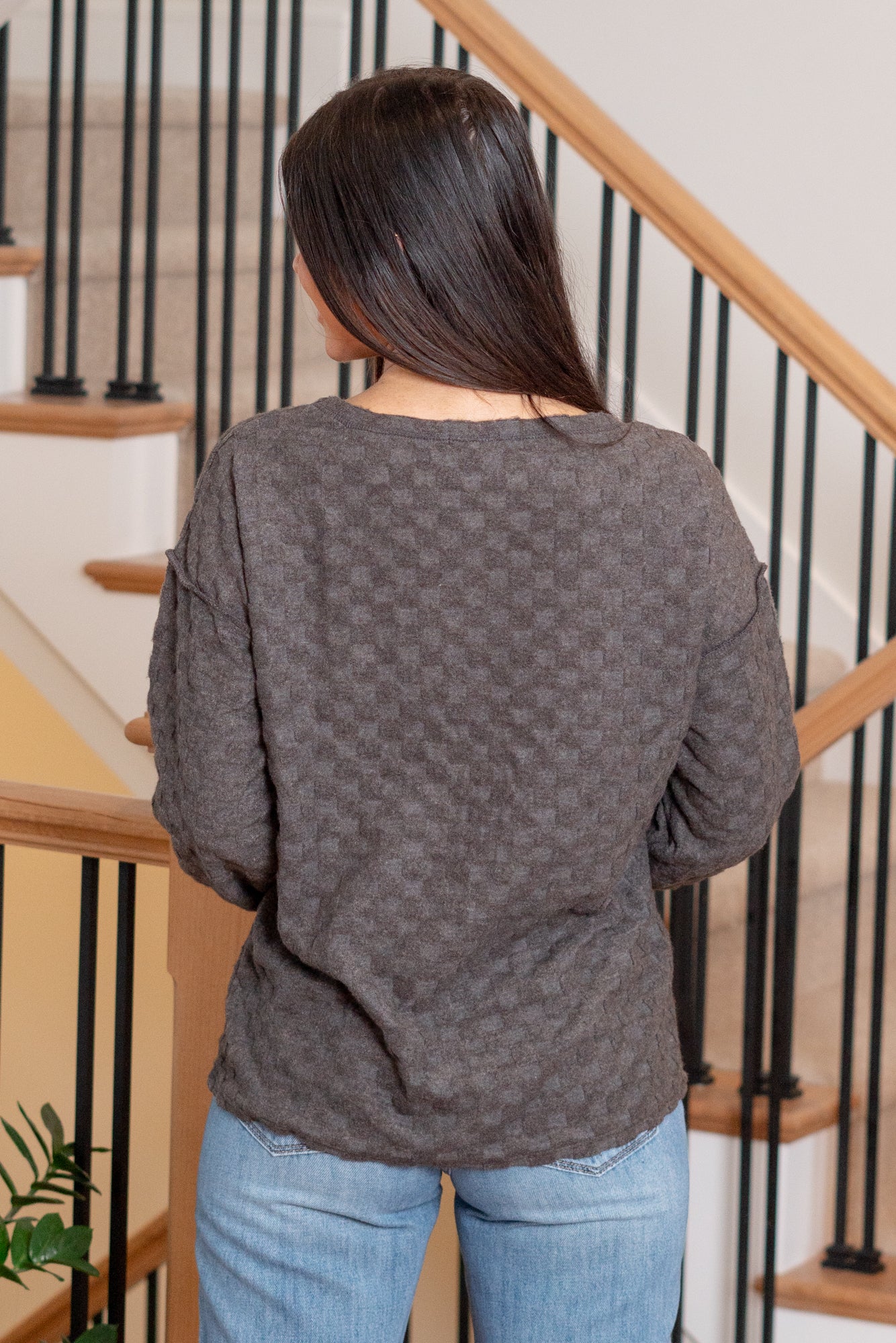 Brushed Checkered Pocket Top - Black