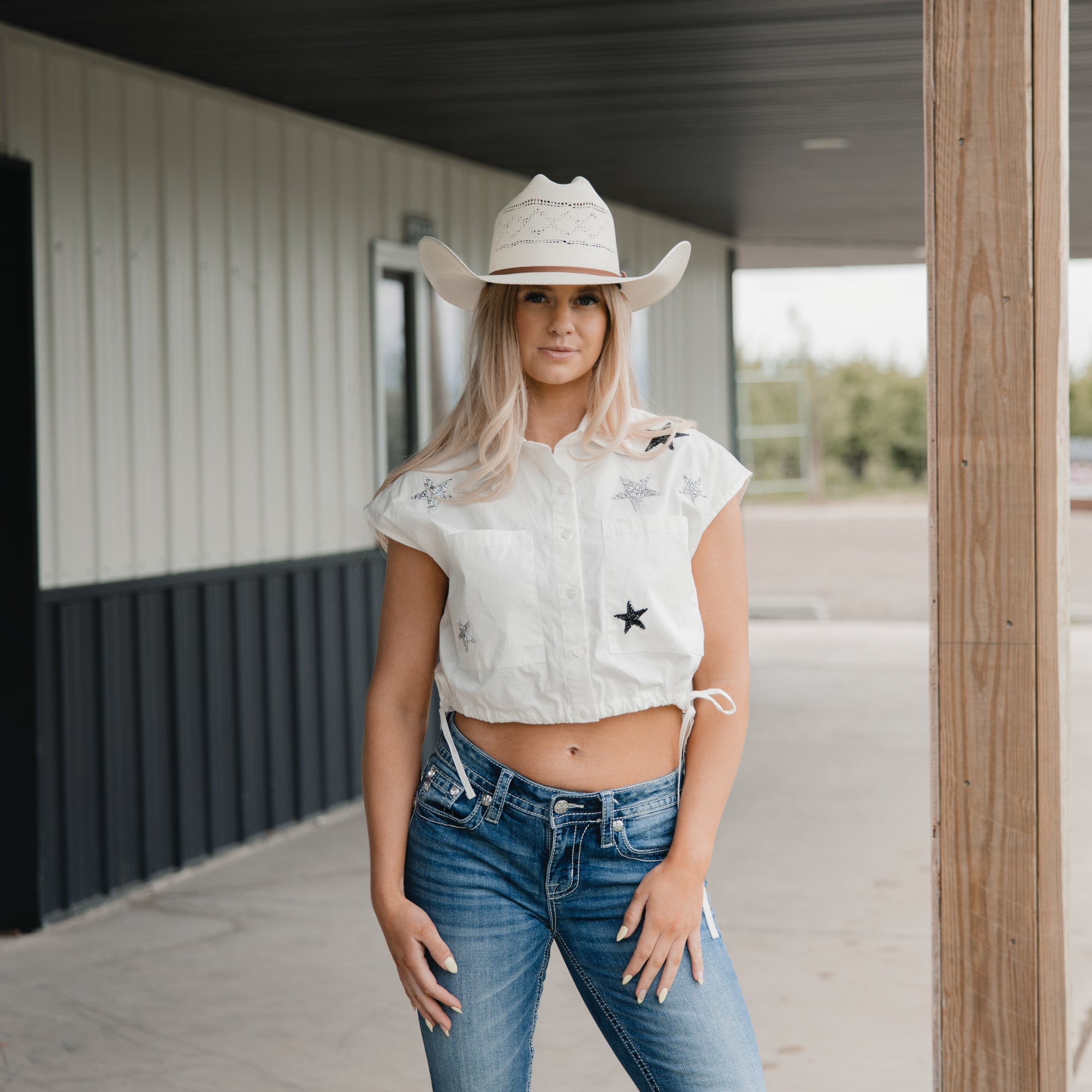 Leopard Jersey Crochet Trim Shrring Sleeves Top