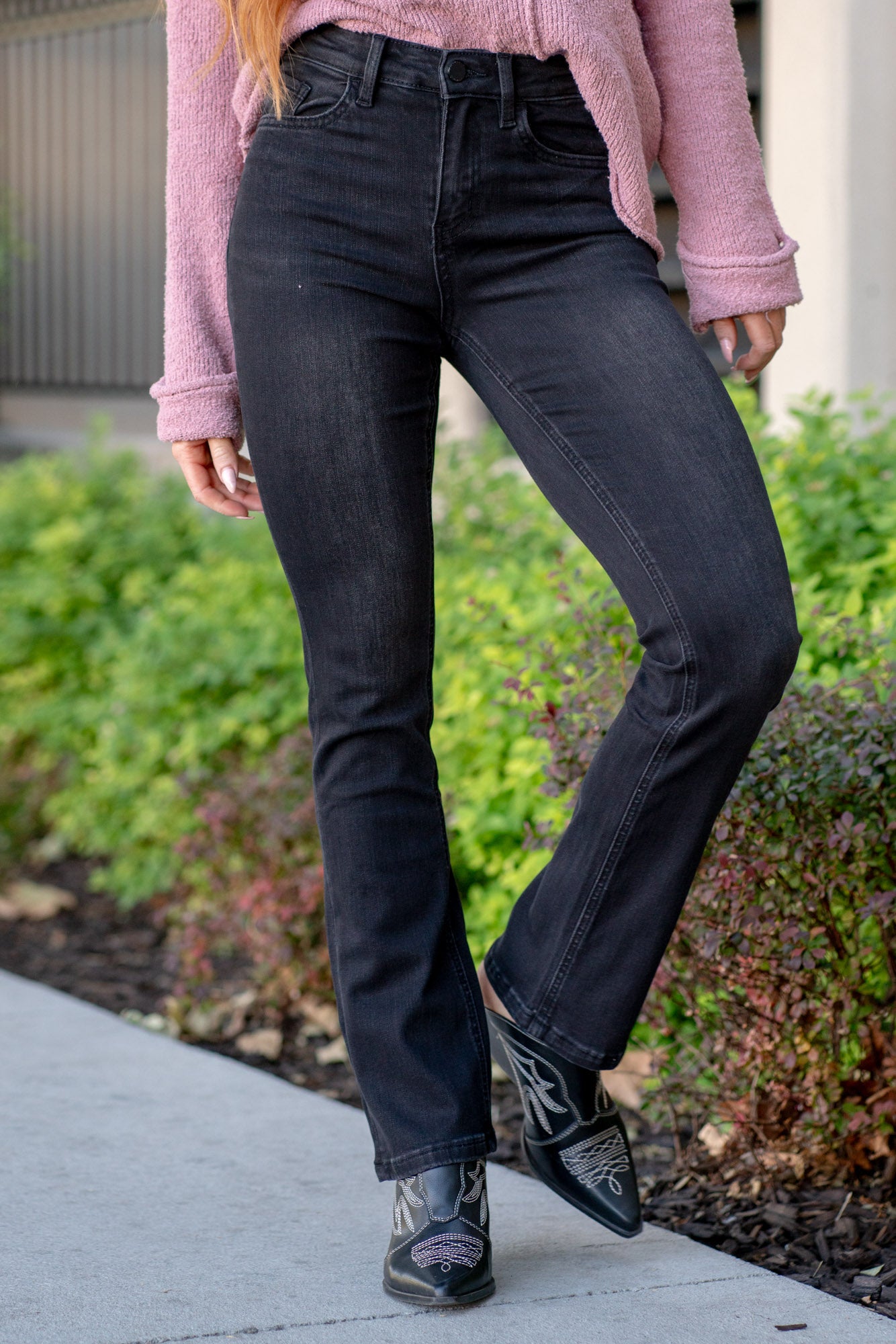 Elevate your denim game with these black wash High Rise Slim Bootcut Jeans. Crafted from comfortable stretch denim, they provide both style and flexibility. The high-rise waist adds a trendy touch, and the slim fit offers a flattering look. These full-length, bootcut jeans are perfect for nailing a chic and versatile outfit in classic black.