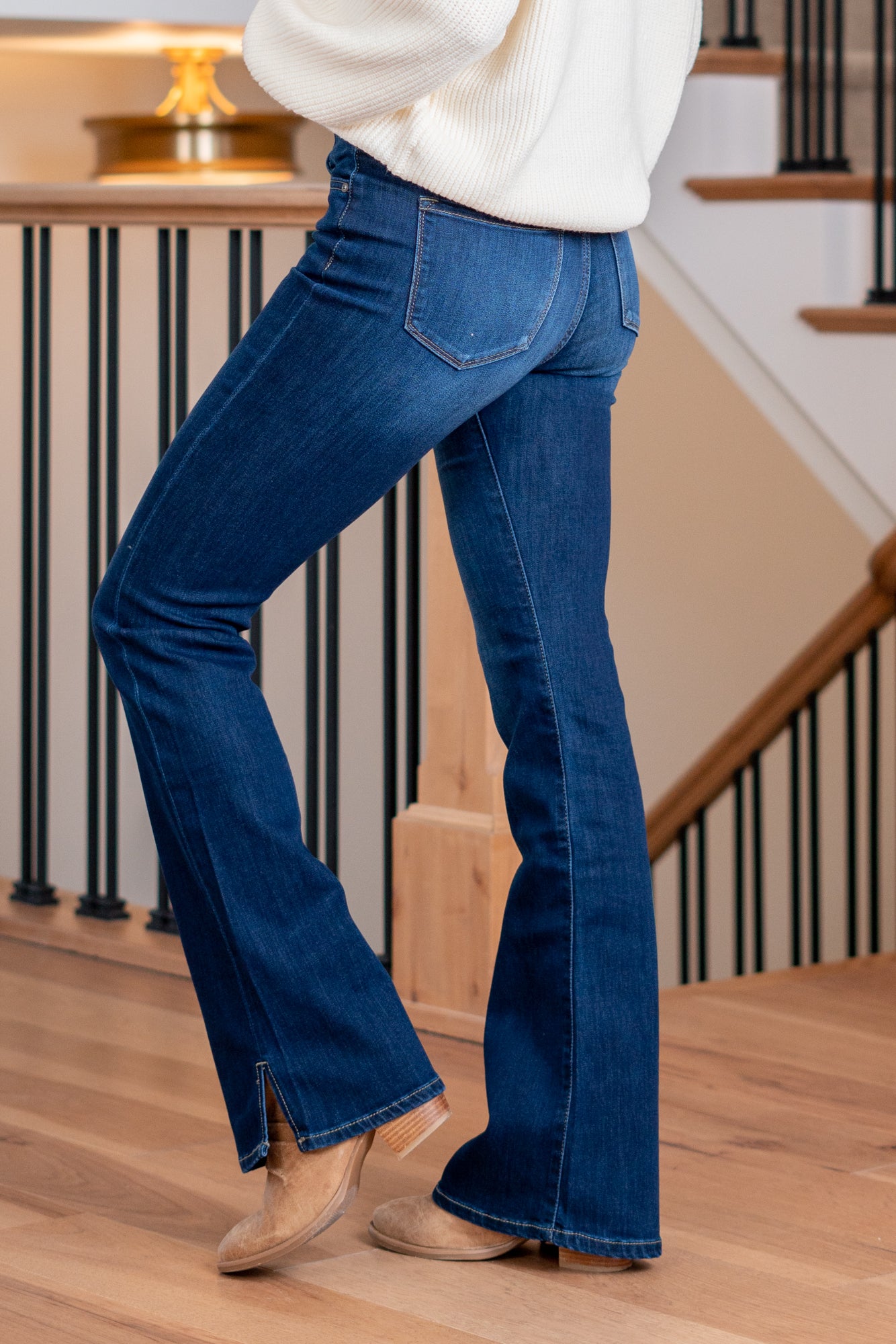 Don't be afraid to wear boot cuts again, not when they look this good! These high-rise jeans hit exactly the right spot on your waist and with some spandex, these will stretch as you wear them and get super comfy!