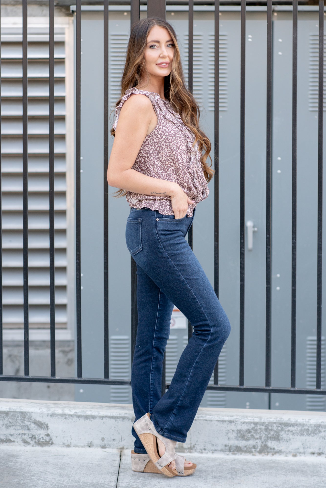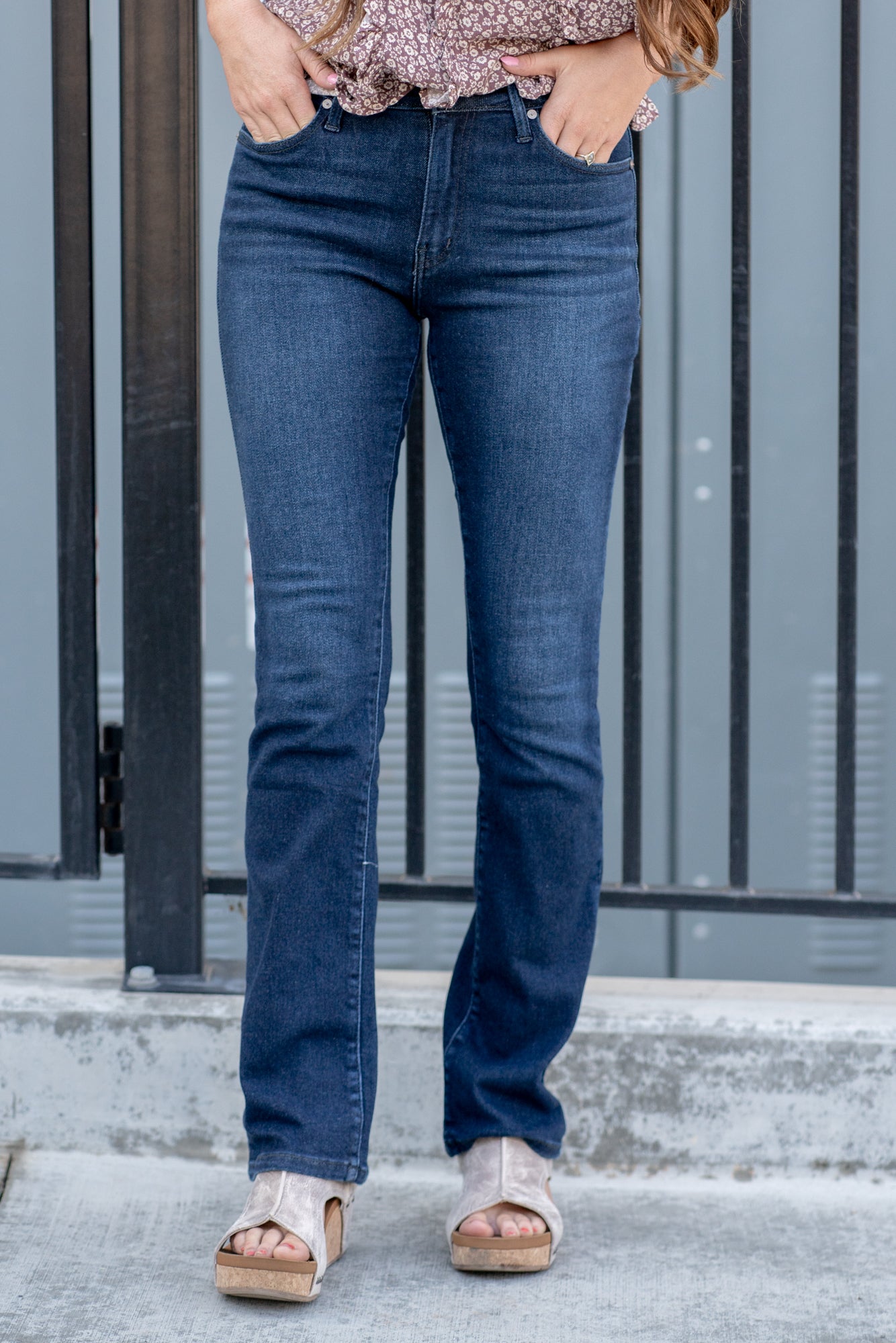 Don't be afraid to wear boot cuts again, not when they look this good! These high-rise jeans hit exactly the right spot on your waist and with some spandex, these will stretch as you wear them and get super comfy!