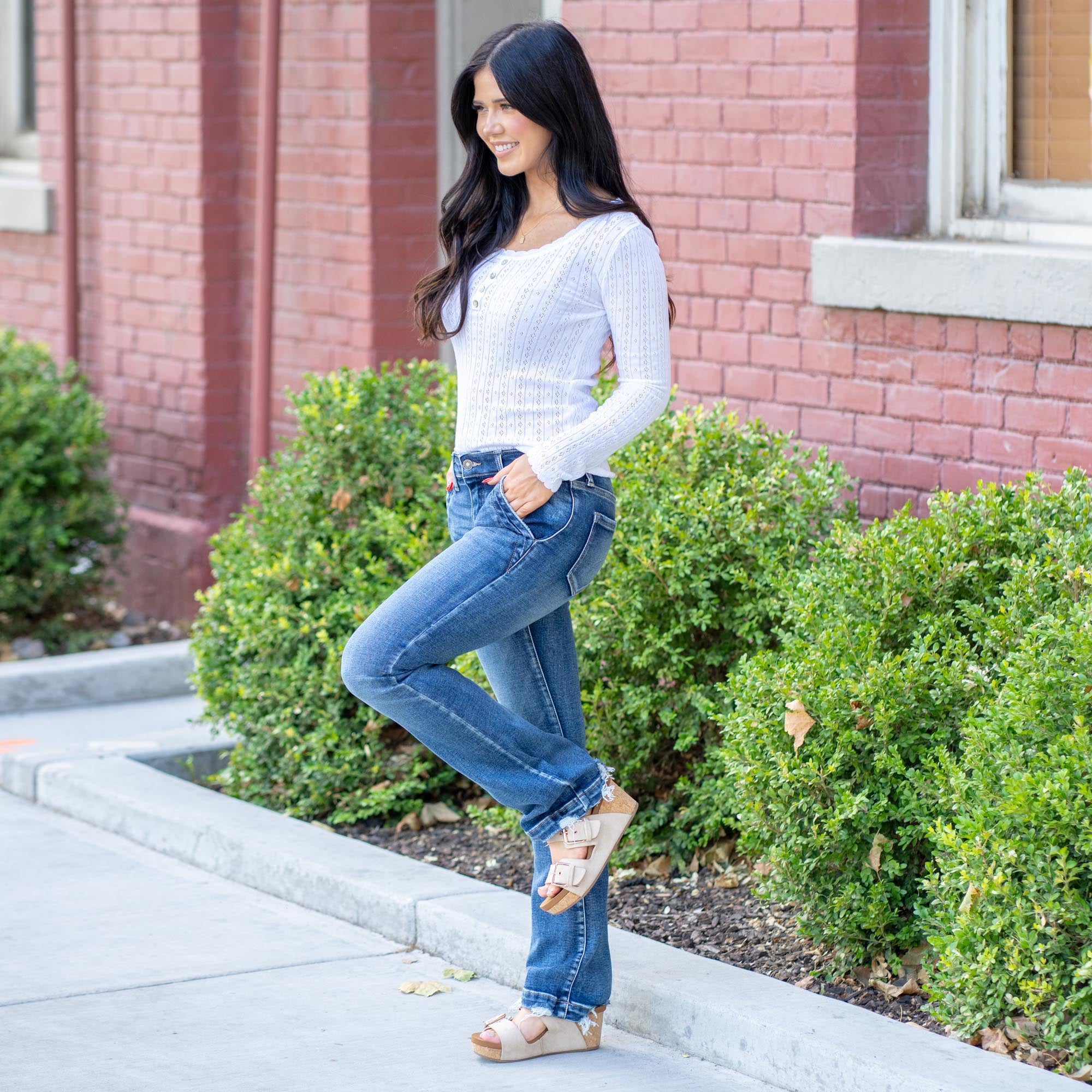 Pair these with your favorite boots for a night out, or style them with sneakers for an easy everyday vibe. With comfort stretch denim and KanCan’s signature flattering fit, the Delcie is sure to become a go-to in your rotation.