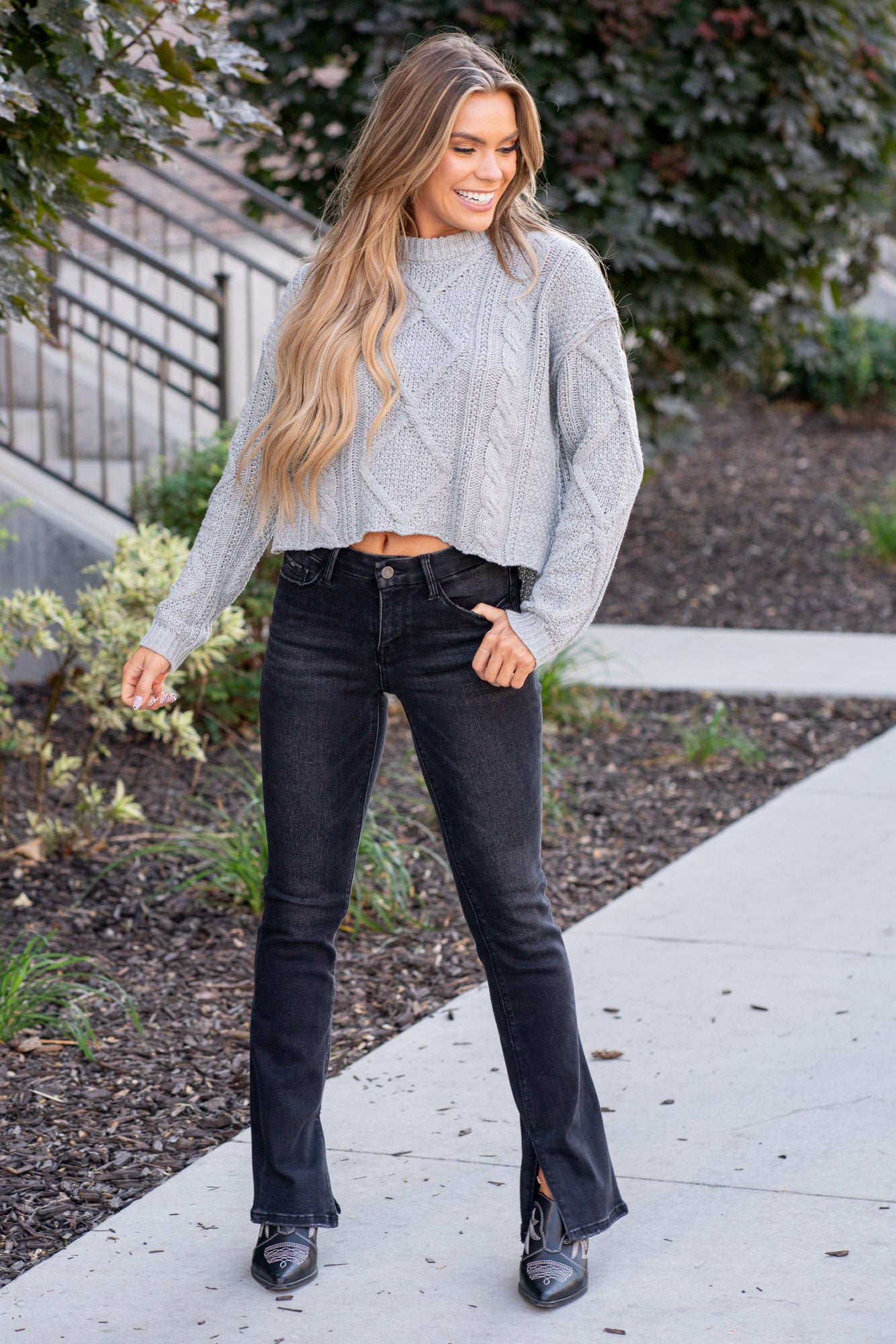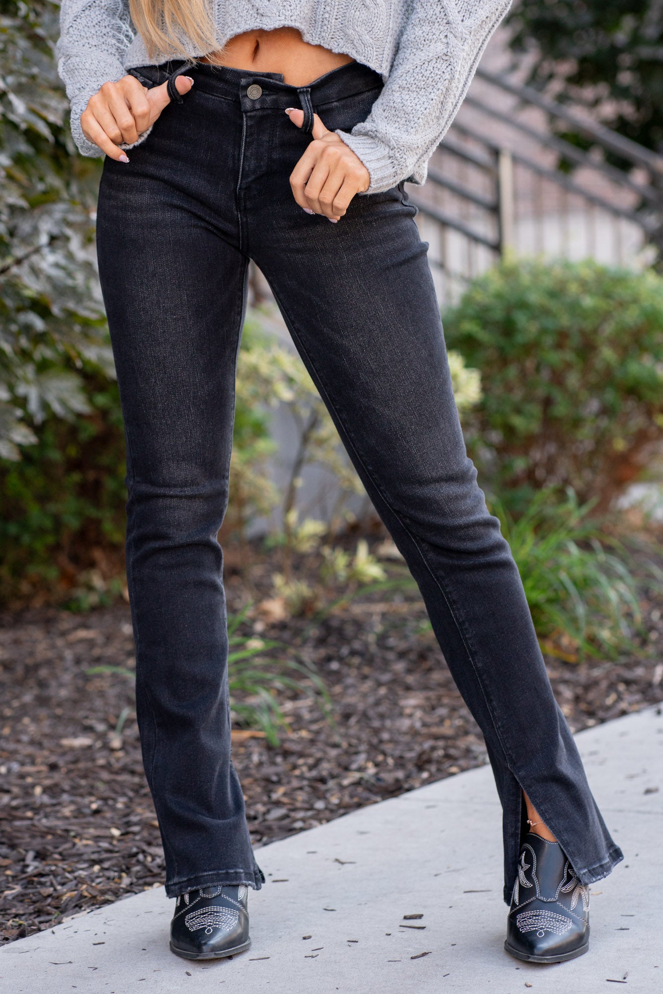 MID RISE INSIDE SLIT HEM BOOTCUT JEANS