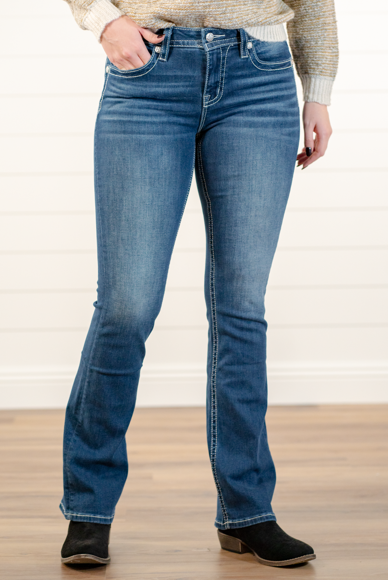 Boot cut jeans are timeless for a reason. Flattering on every body type, easy to dress up or down, and always in style. Explore our selection of Judy Blue, KanCan, VERVET, and Risen boot cuts — with inseams, rises, and washes to match your mood.