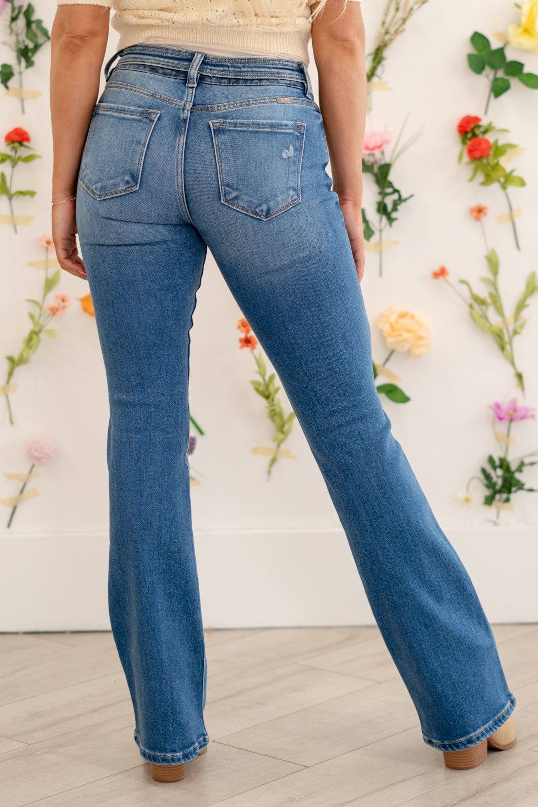 The Kiera Mid Rise Bootcut Jeans, your go-to for everyday glam! With a medium wash and classic fit, they're all about that effortless cool. Made with stretch denim, they'll hug your curves while keeping you comfy. Plus, with their five-pocket design and zip-fly closure, they're as practical as they are stylish.