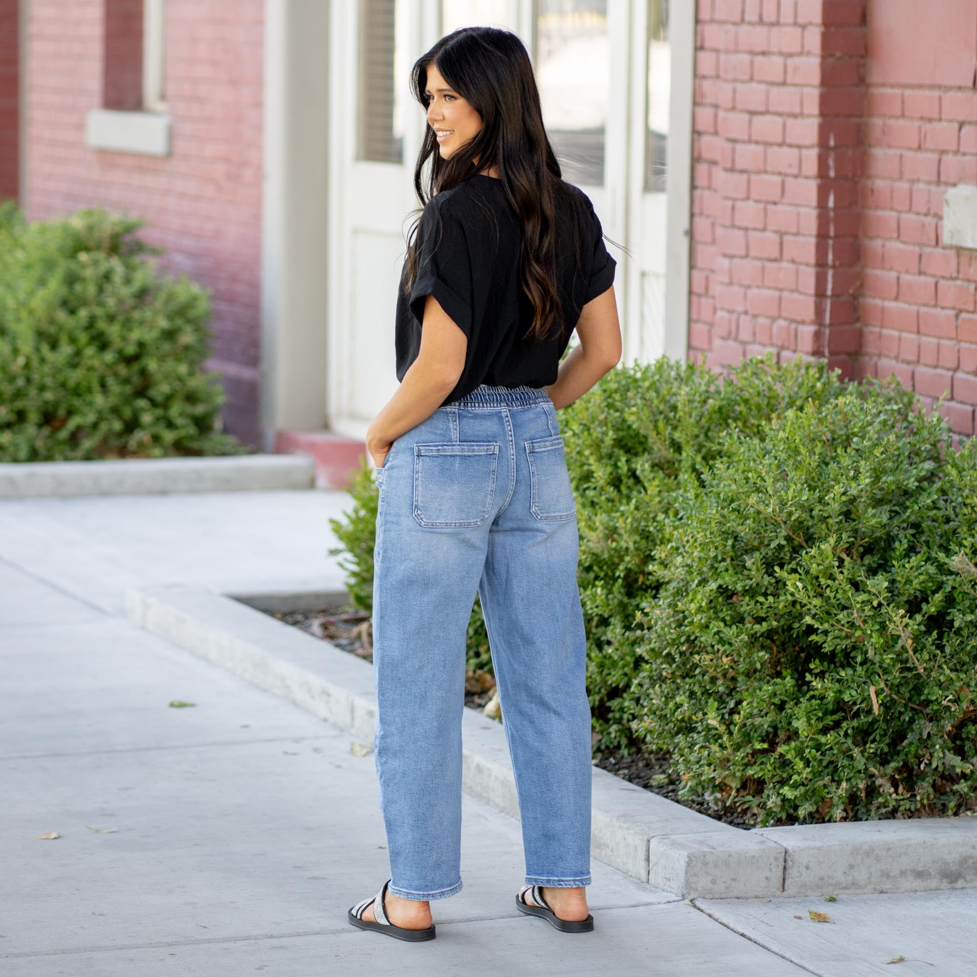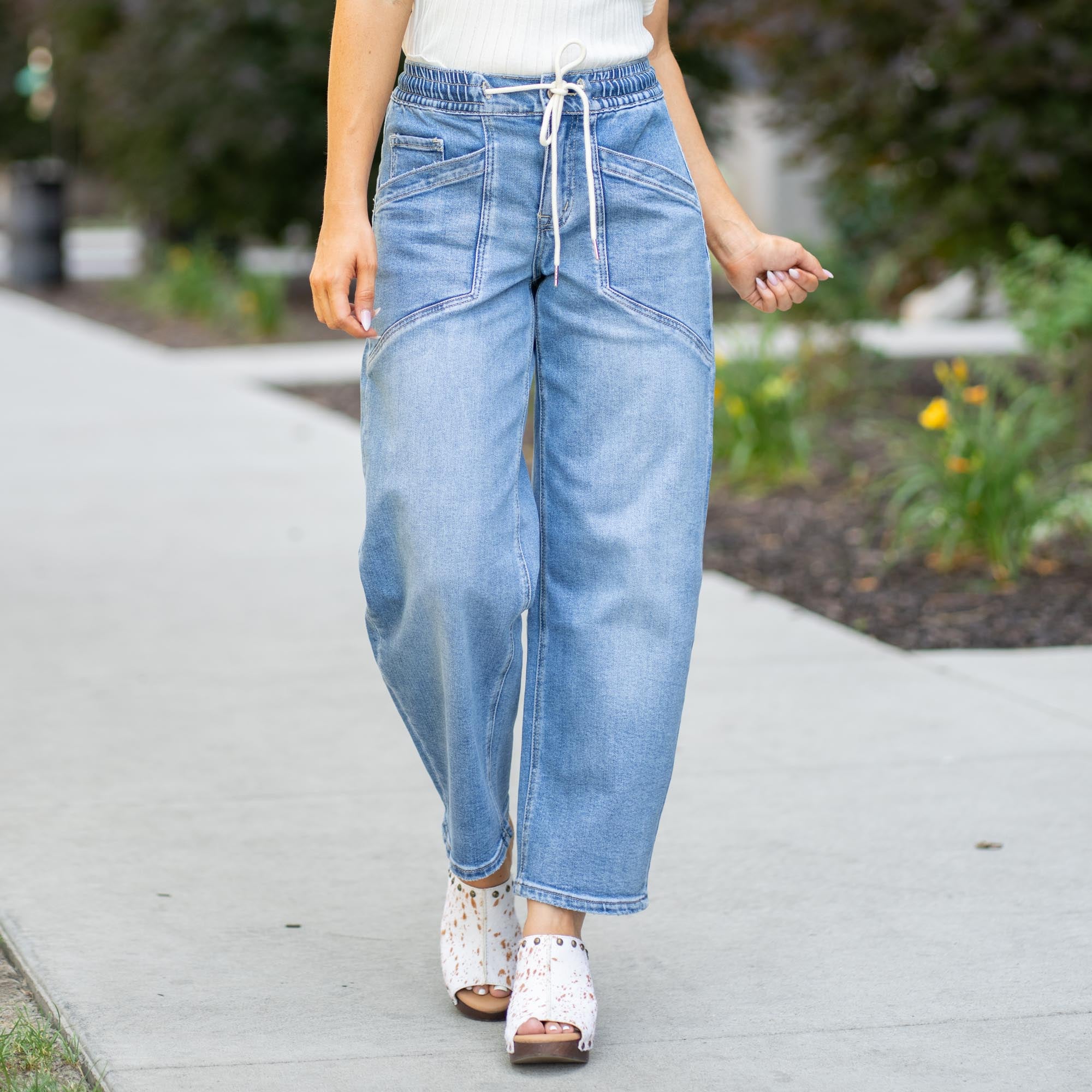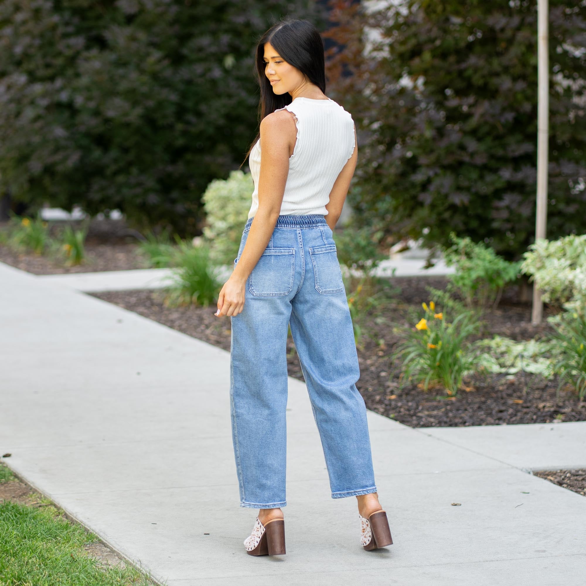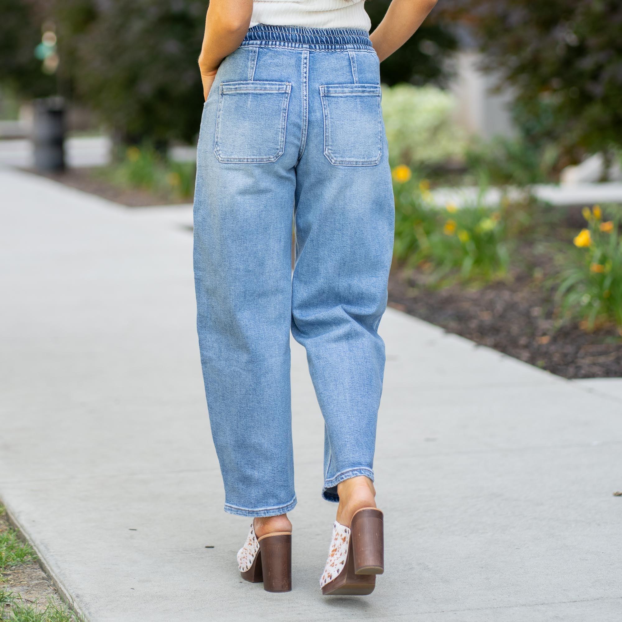Upstanding High Rise Elastic Waistband Wide Barrel Fit