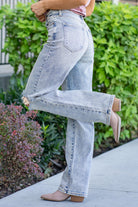 Add a touch of bold, vintage-inspired edge to your wardrobe with the Rebel Edge Super High Rise Dad Jeans. Designed with a flattering 12" rise, these jeans sit high on the waist for a structured fit that elongates the body. The relaxed dad jean silhouette flows straight through the leg, finished in a medium tinted blue wash that balances classic style with modern cool.