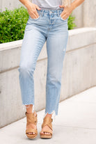 The High Rise vintage crop straight jeans in a light blue wash are a classic and trendy choice. Made of non-stretch denim, they offer a structured fit and vintage charm. With a high-rise waist, straight leg, and cropped length, they are versatile for any occasion, adding style to casual or dressed-up looks.