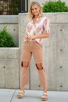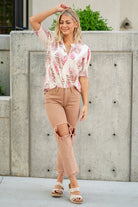 Cas is 5'7" and wears a size 25 in jeans, a small in tops, and 8 in shoes. She is wearing size 25 in these jeans.