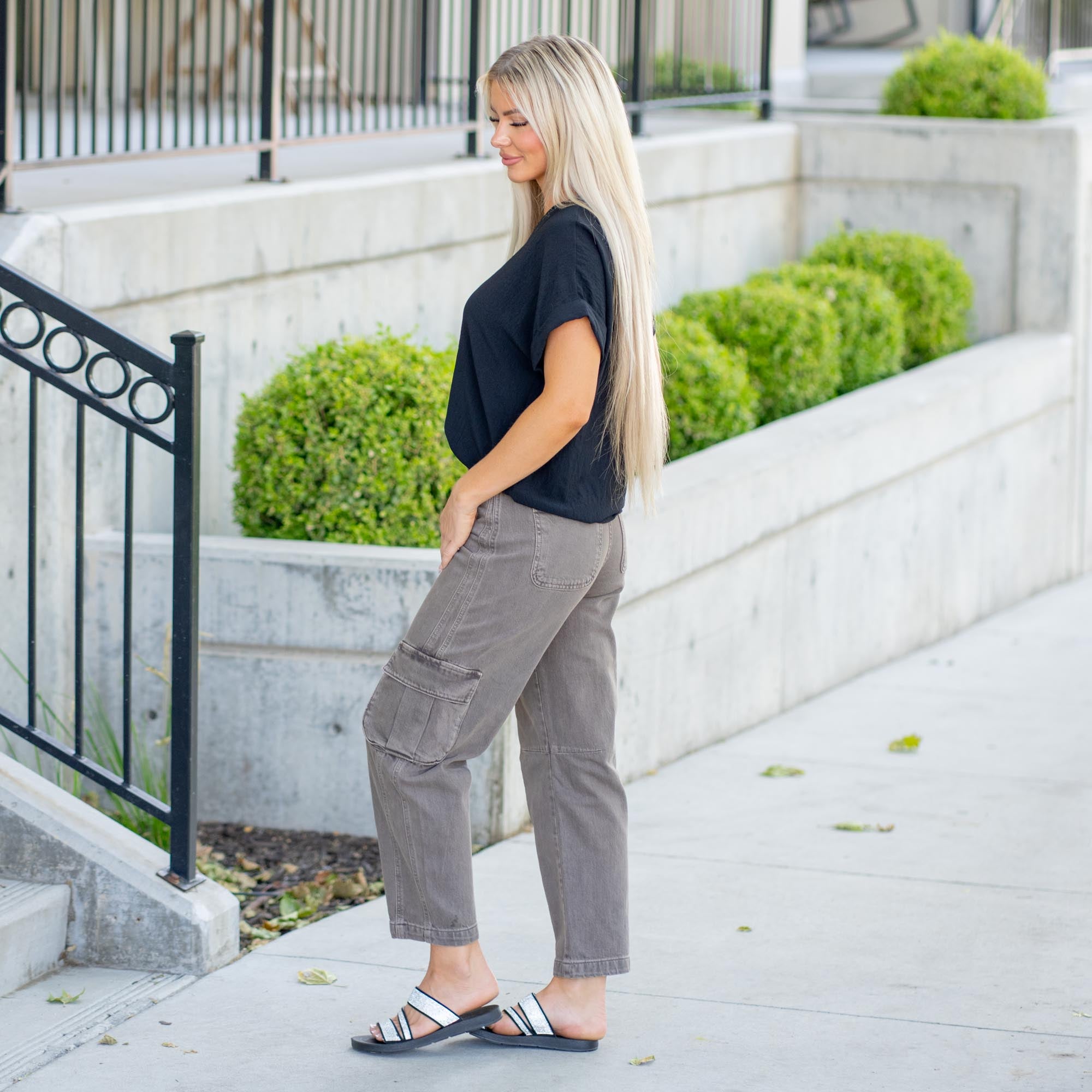 The KanCan Vale High Rise Slim Balloon Fit Jeans bring a fresh twist to a trending silhouette. Sitting above the natural waistline, these jeans relax through the thigh and leg for a flattering, comfortable balloon fit. The beautiful mocha wash offers a versatile, neutral tone that pairs effortlessly with everything from cozy sweaters to fitted tops. A classic five-pocket design adds timeless appeal, while the single-button front closure and secure zip fly ensure a reliable fit. Crafted from soft, durable denim with just the right amount of stretch, the Vale jeans maintain their shape while allowing you to move with ease. Perfect for elevating your everyday style with a modern yet wearable edge.