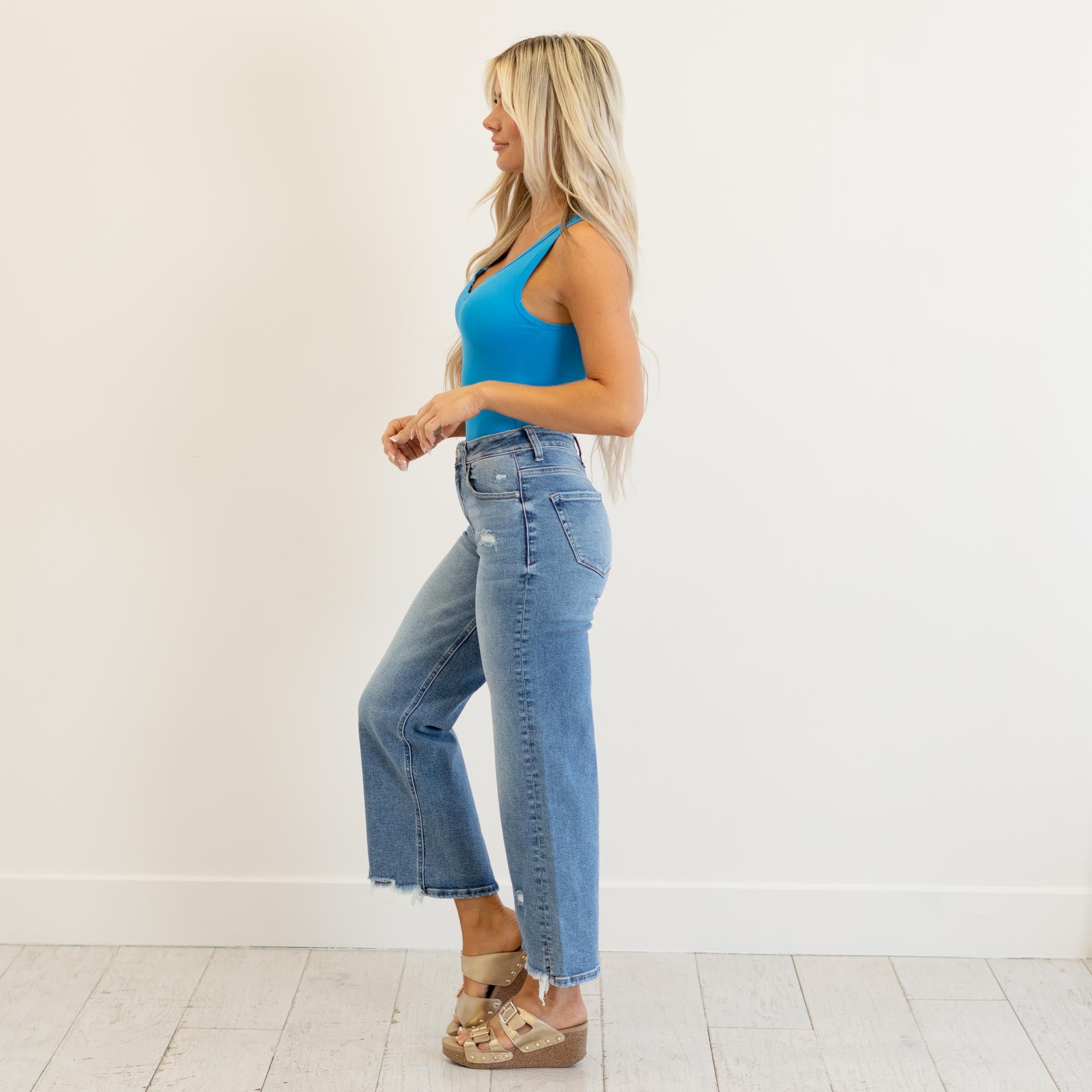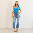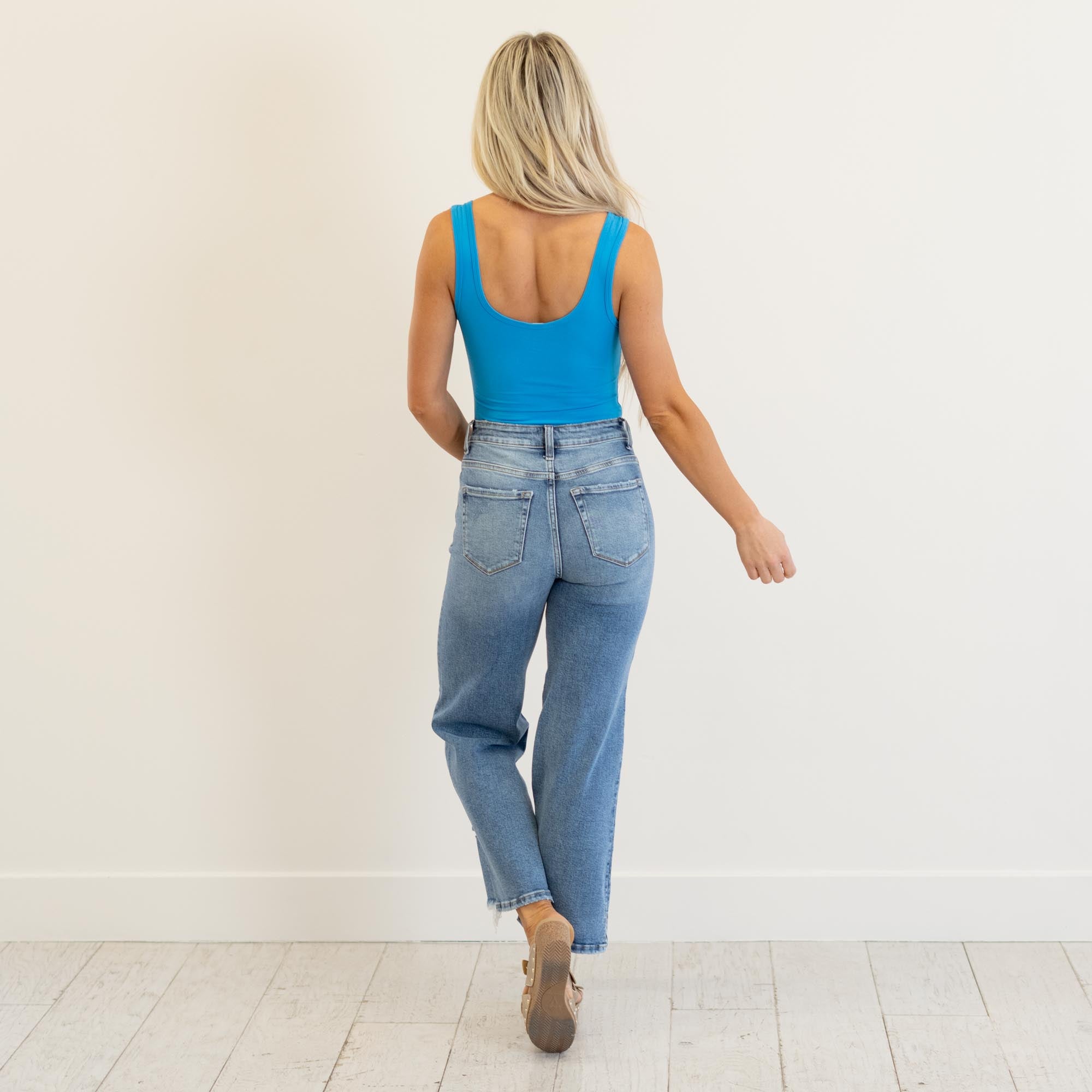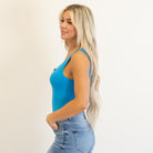 Brushed Dry Microfiber Split Neck Bodysuit Deep Sky