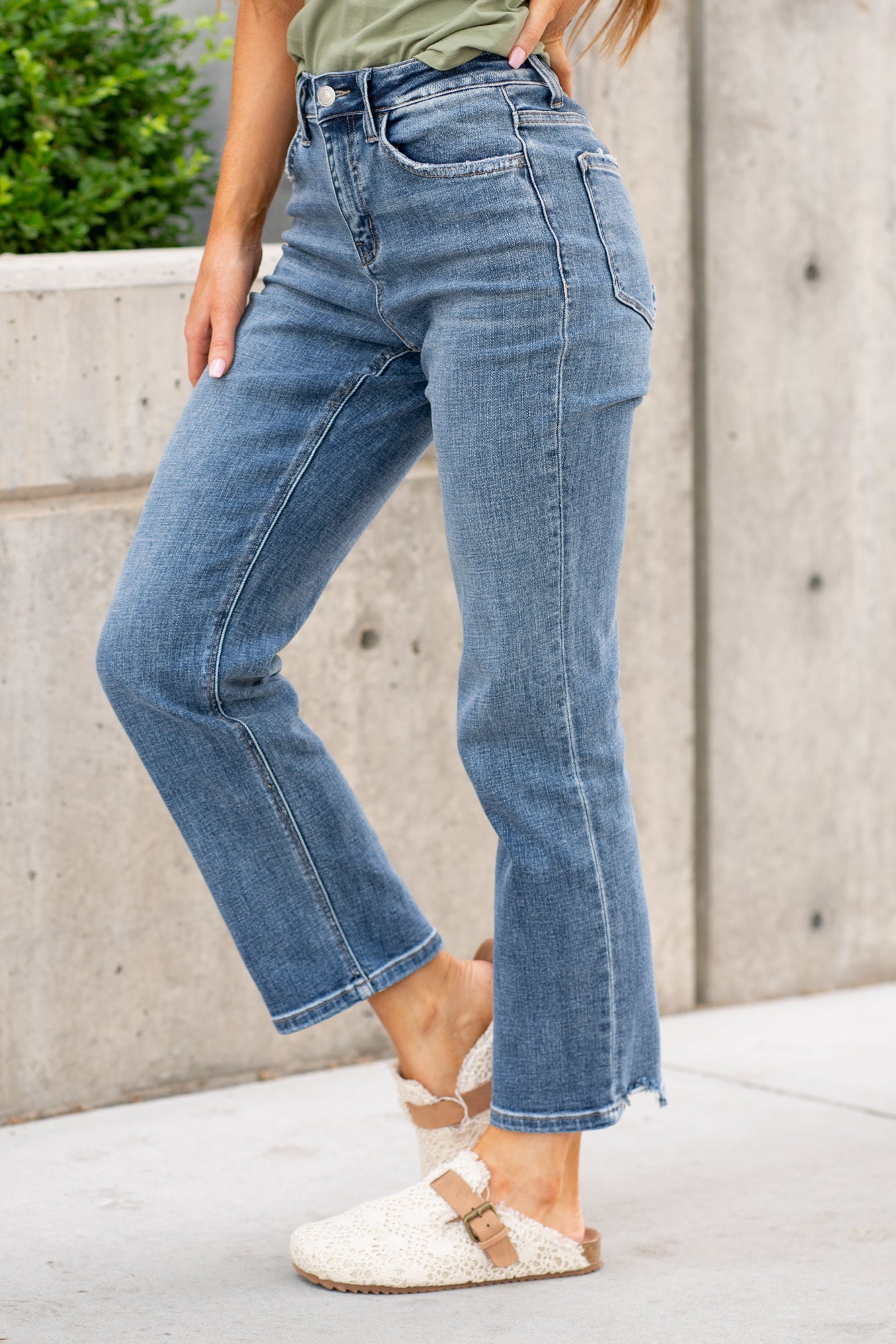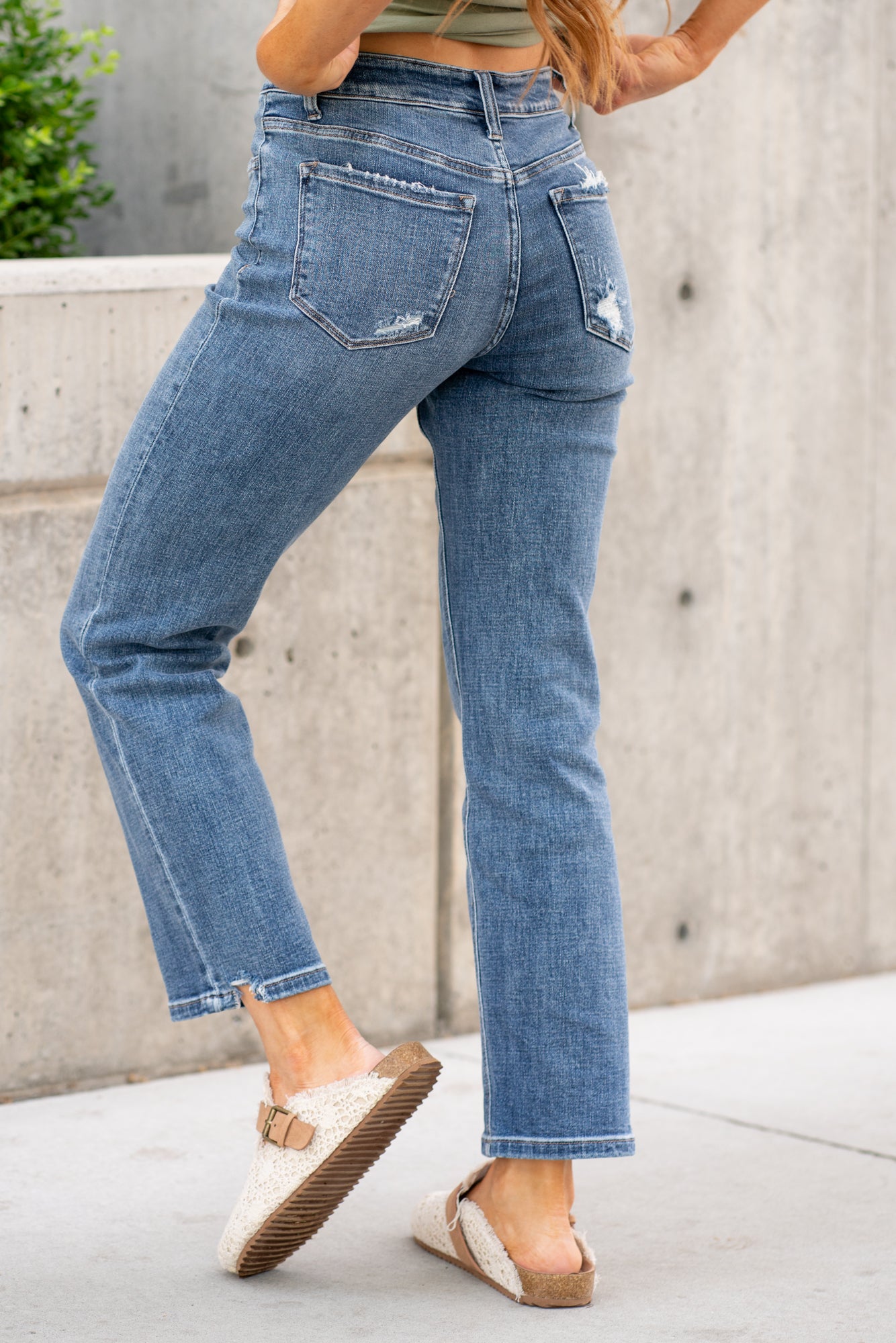The Stay Together ankle straight jeans are a high-rise fit with a comfortable stretch. Pair with your favorite wedges and blouse for a cute spring look.