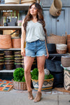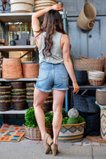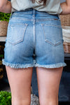 Linden High Rise Distressed Mid Shorts
