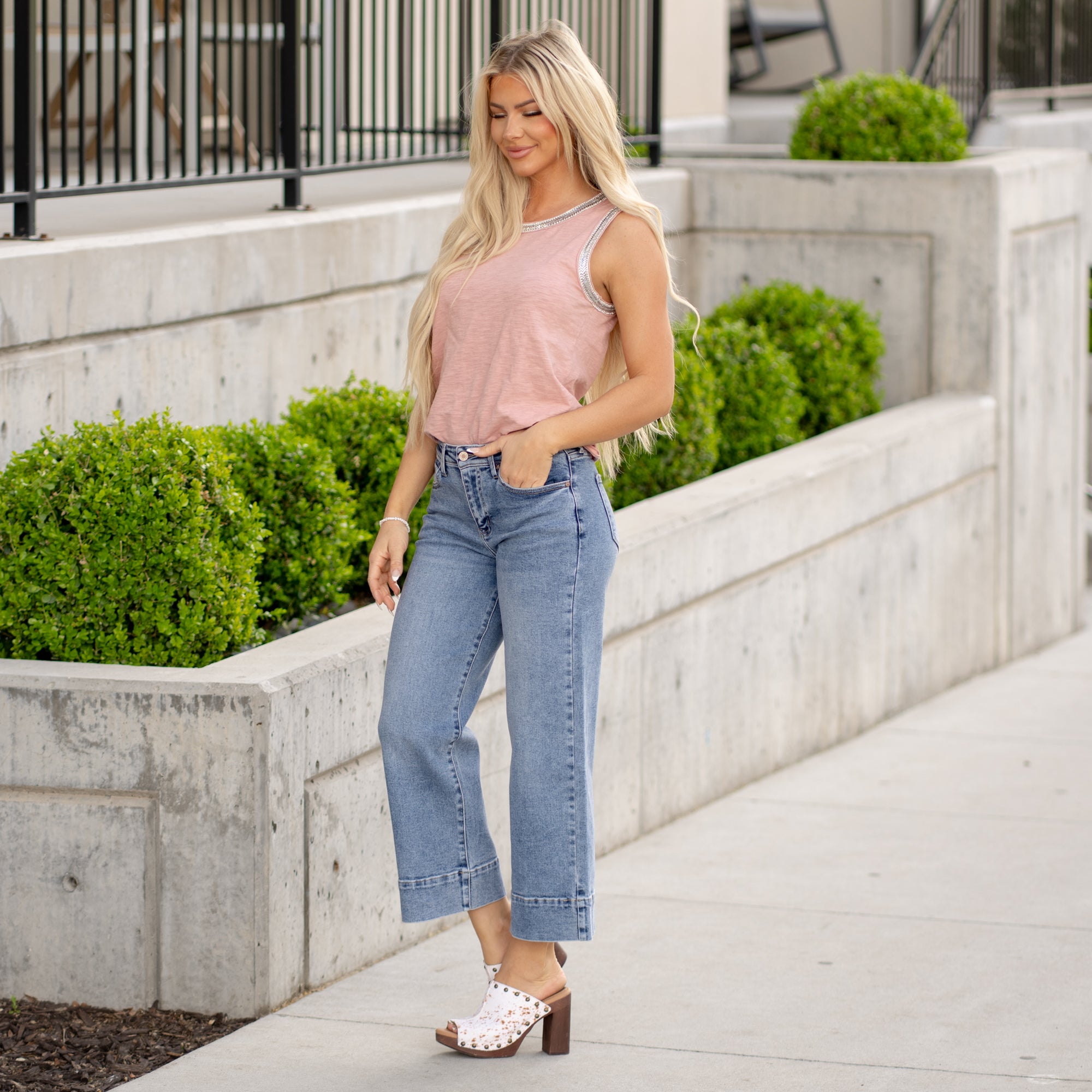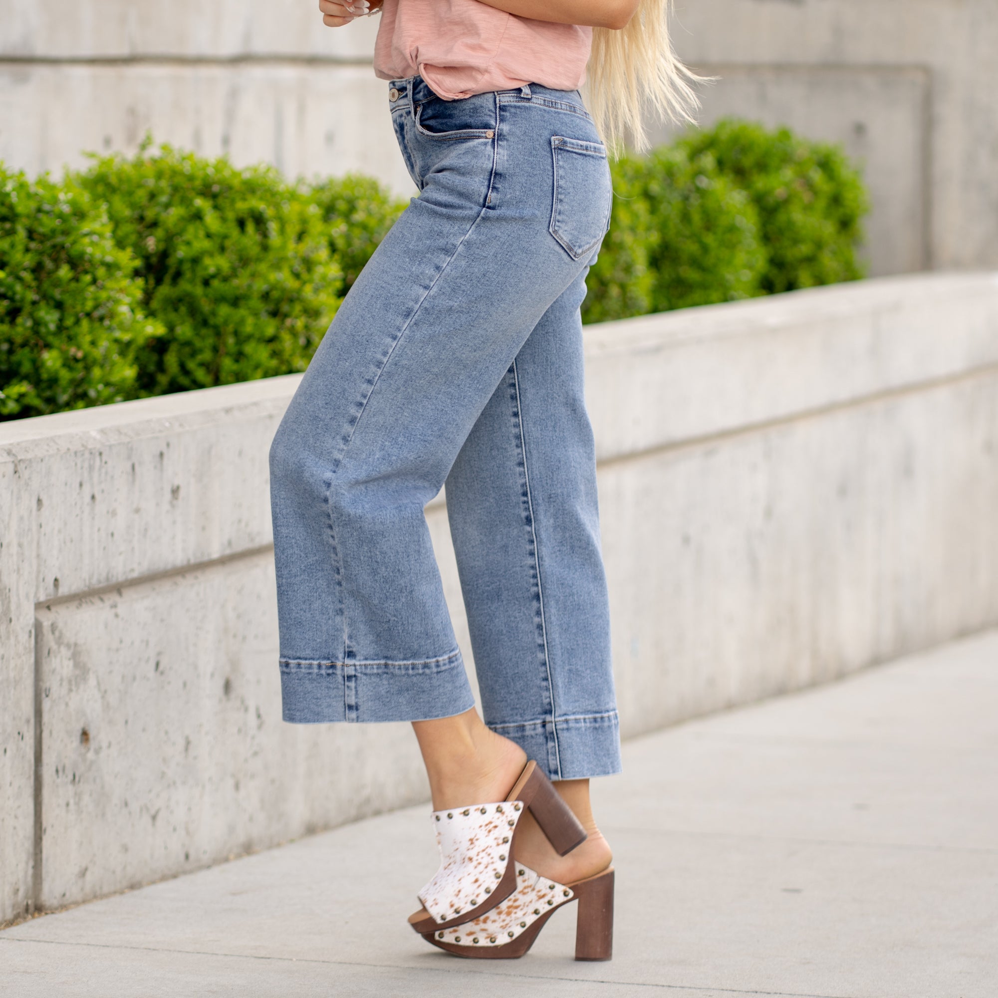 The Dianella High Rise Crop Wide Leg Jeans are made to express your style with ease. Featuring a raw hem for a modern, effortless edge, this pair blends trend and timelessness in one clean silhouette. Crafted from comfort stretch denim with a high cotton content, they offer that authentic, high-quality feel you can wear all day. Finished with a single-button closure, zip fly, and classic 5-pocket design for everyday ease.