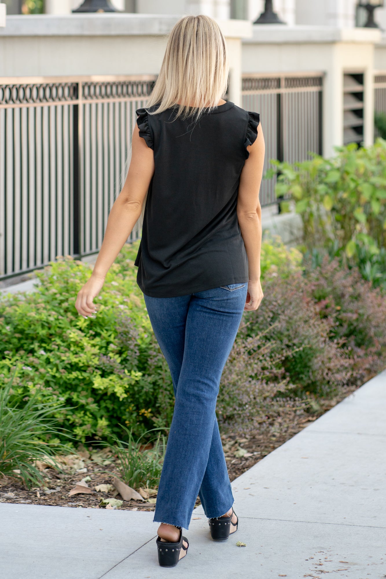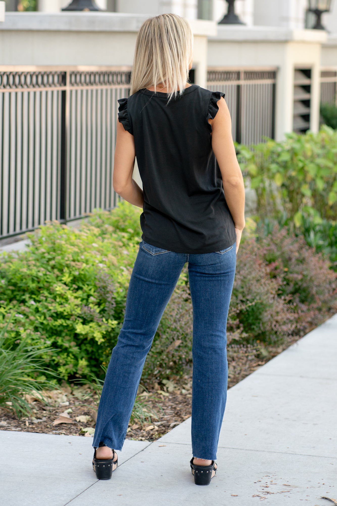 Ruffle Shoulder Knit Top - Black