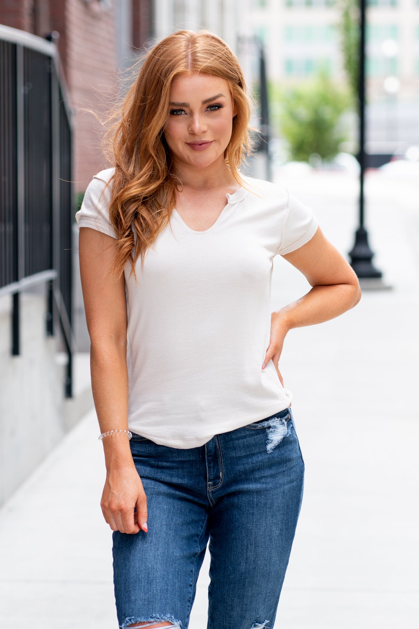 Karley V Neck Fitted - Ivory T-Shirt