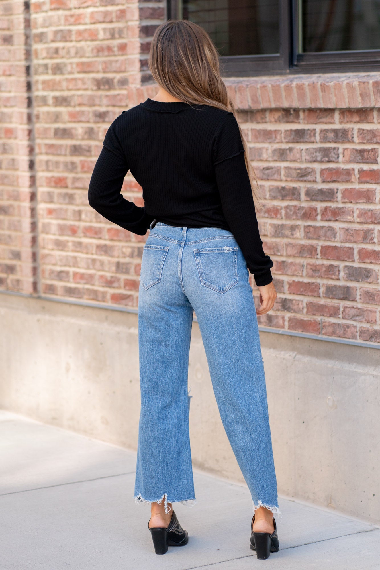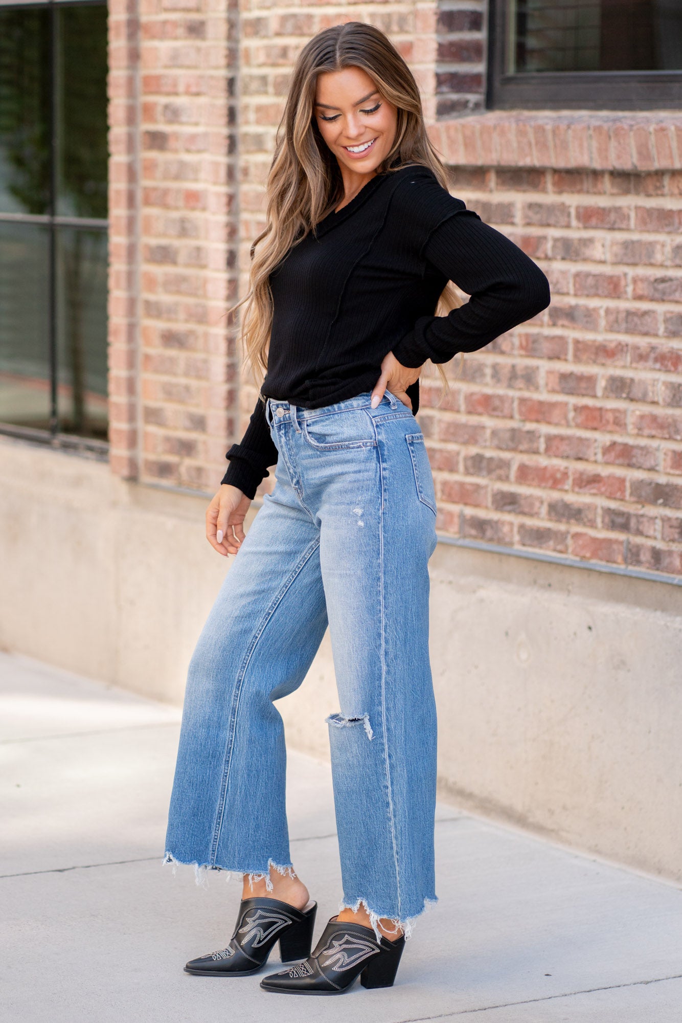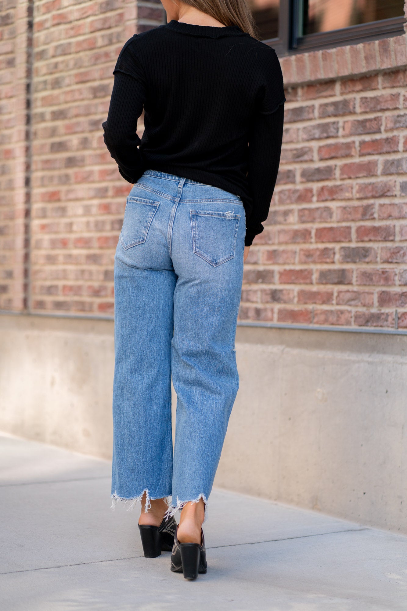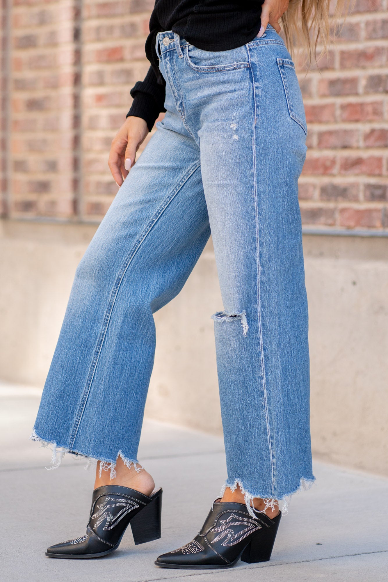 Sapphire Dragon High Rise Distressed Crop Wide Leg