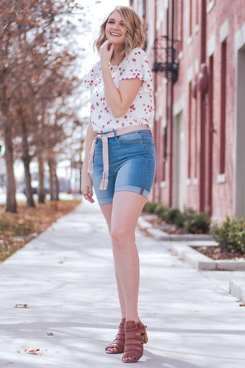 Star Embroidered High Rise Fray Shorts
