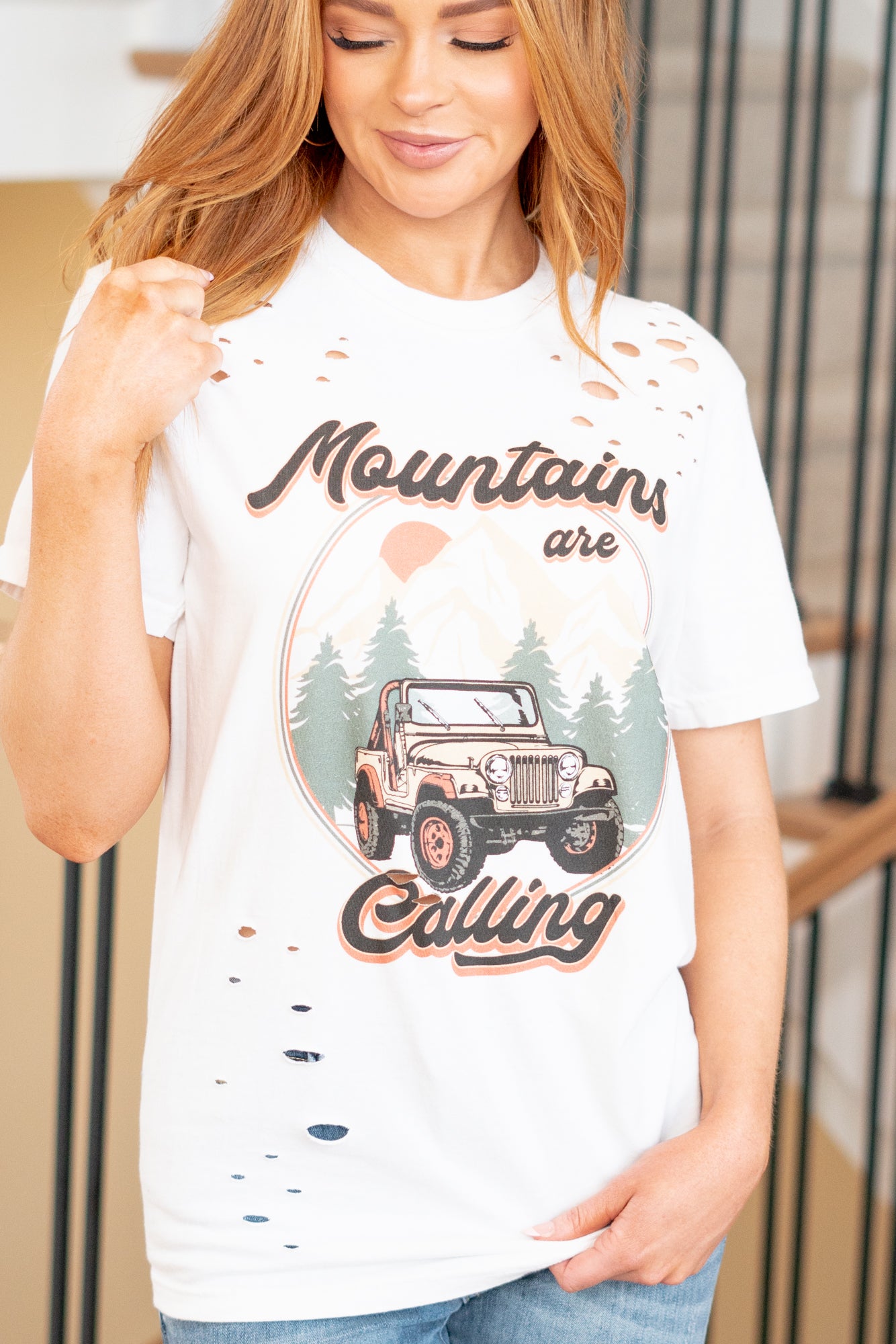 Mountains Are Calling Distressed Graphic - White T-Shirt