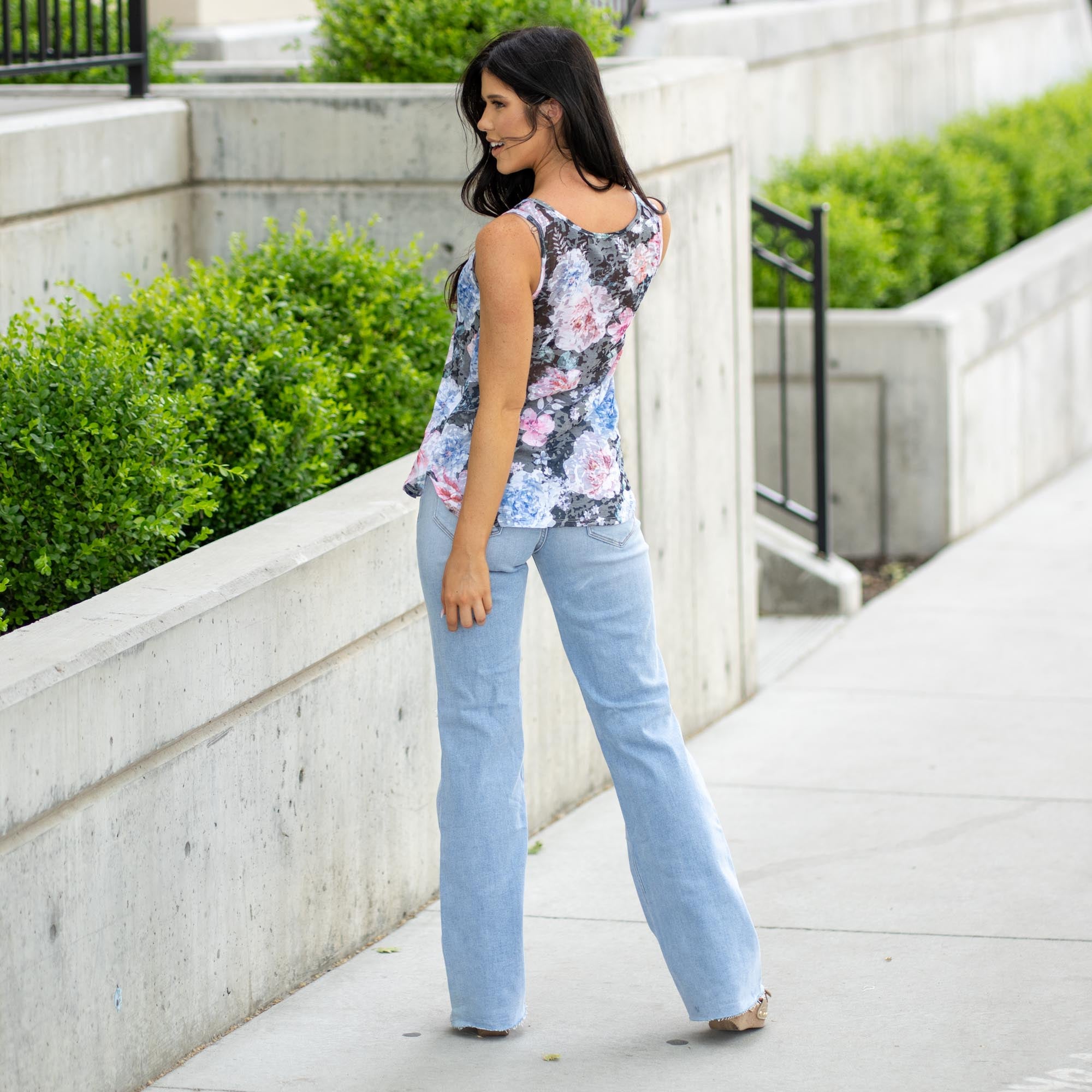 Floral Print Burnout Sleeveless Top