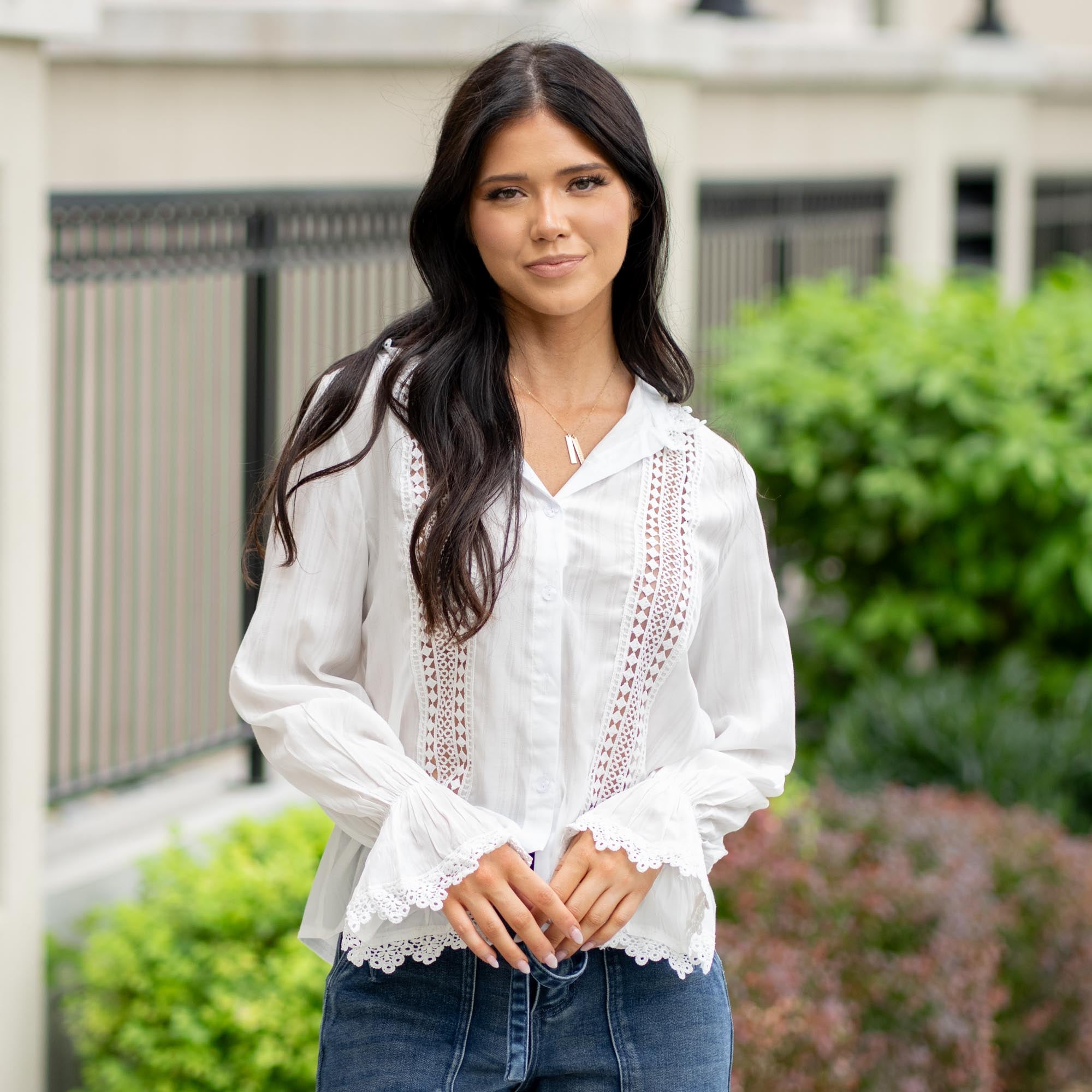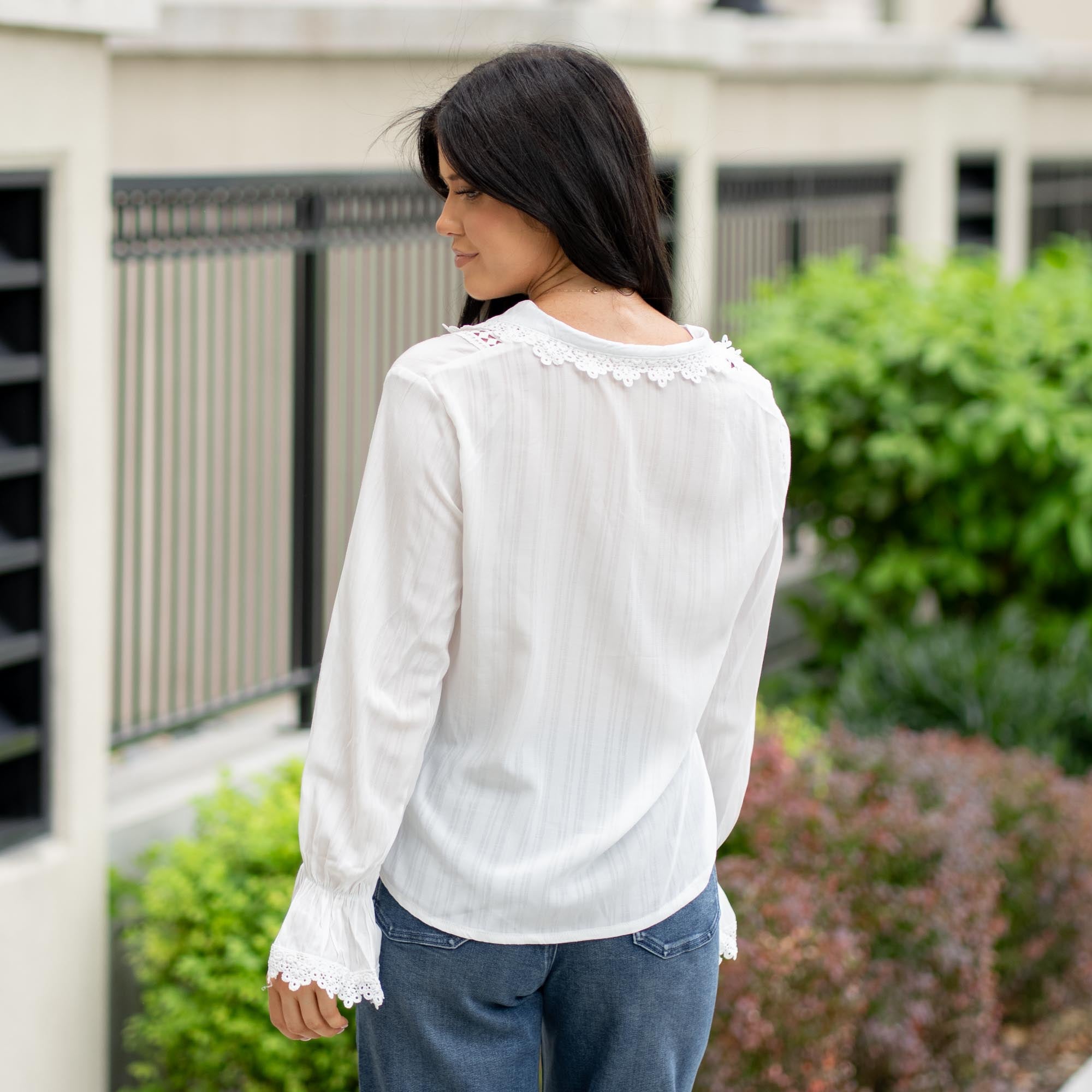 This charming blouse is full of delicate details—from the vintage-inspired lace stand collar to intricate eyelet accents and dreamy lace sleeves. Feminine, timeless, and sweetly sophisticated, it’s the kind of top that makes even a simple outfit feel extra special. Pair it with denim for an effortless contrast or dress it up for brunch dates and garden parties alike.