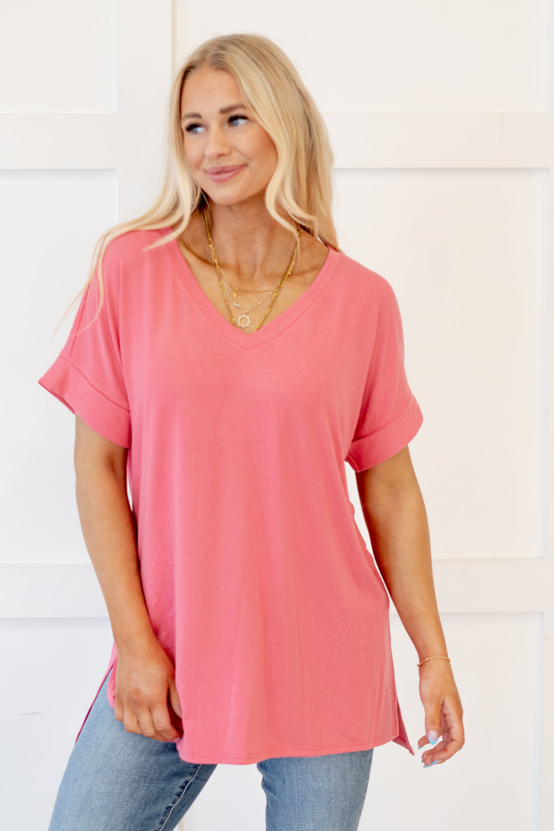 The absolutely perfect v neck tee with oversized folded sleeves.