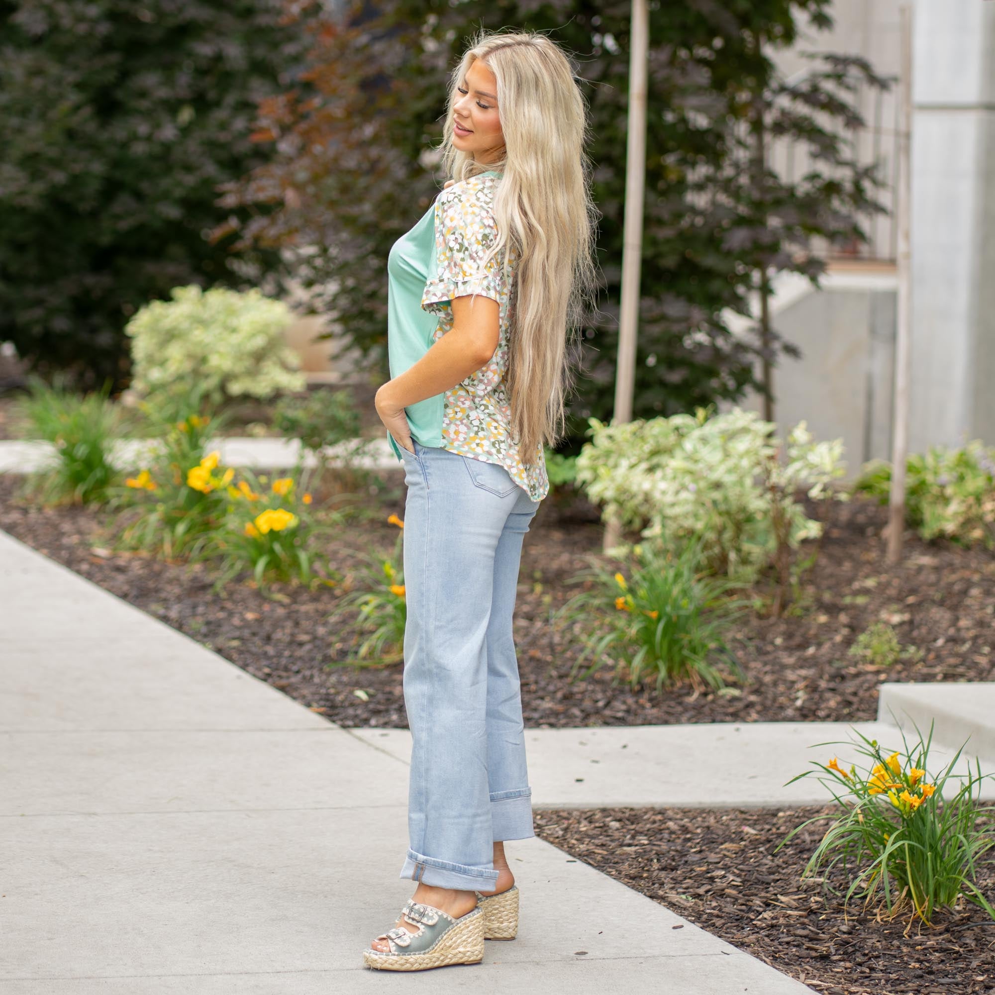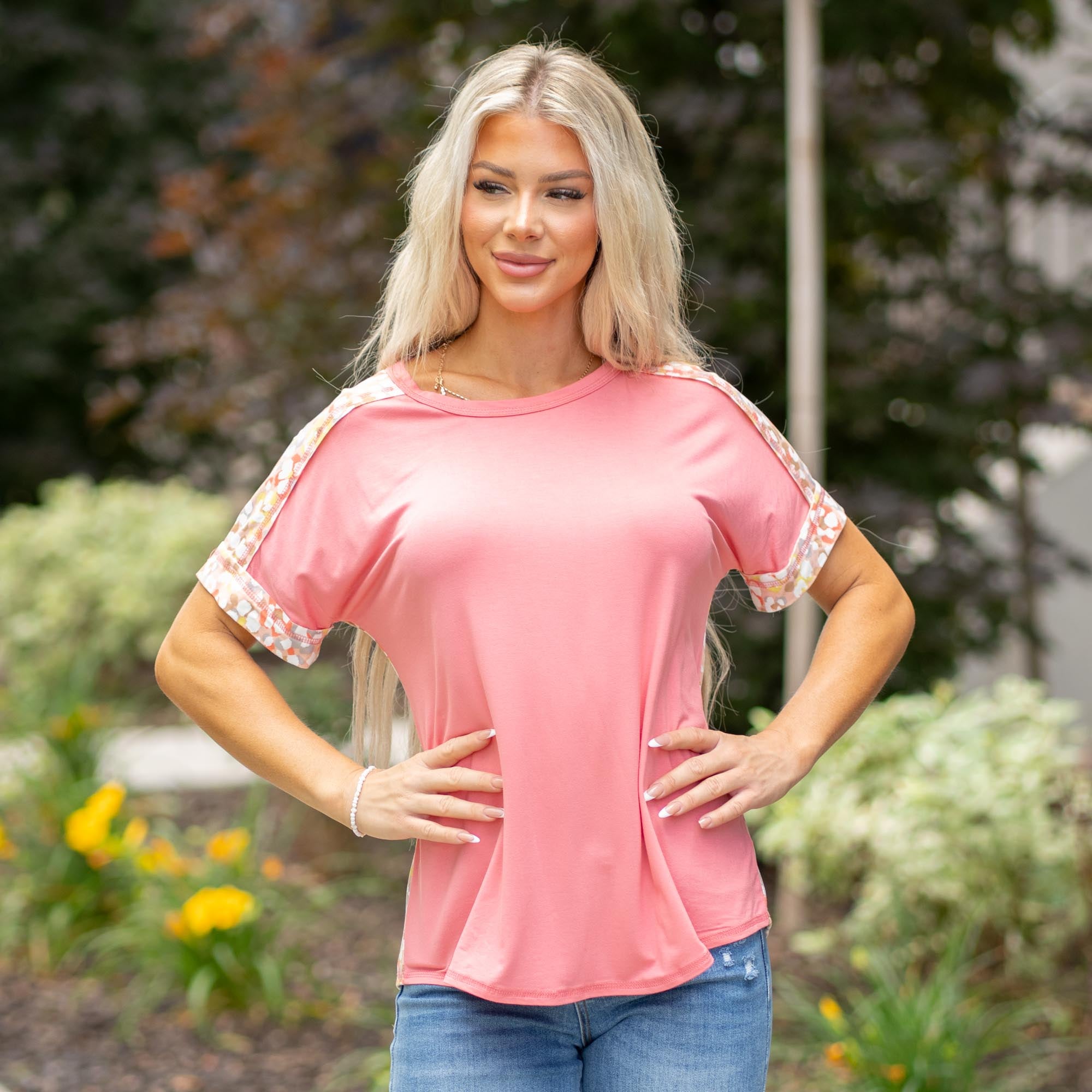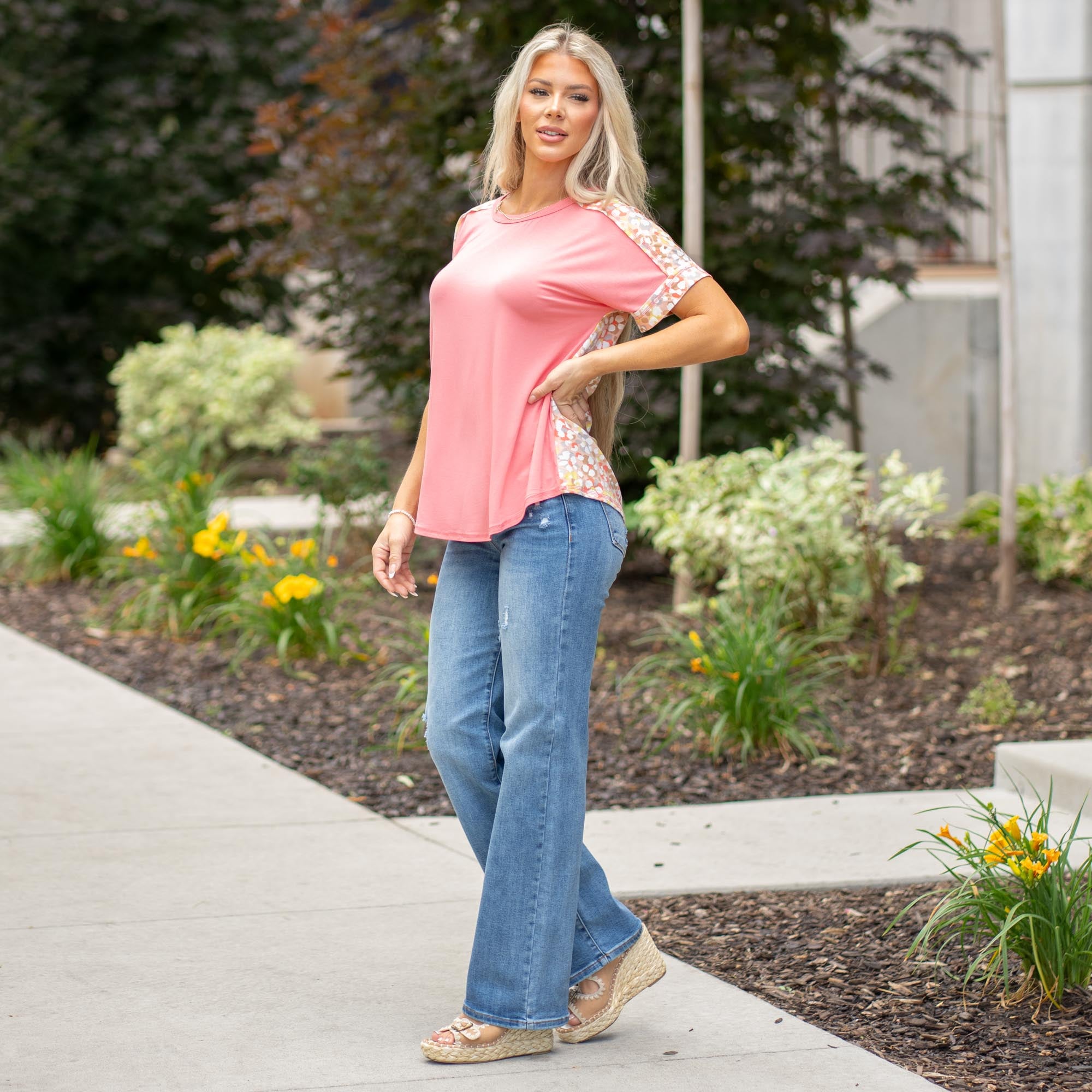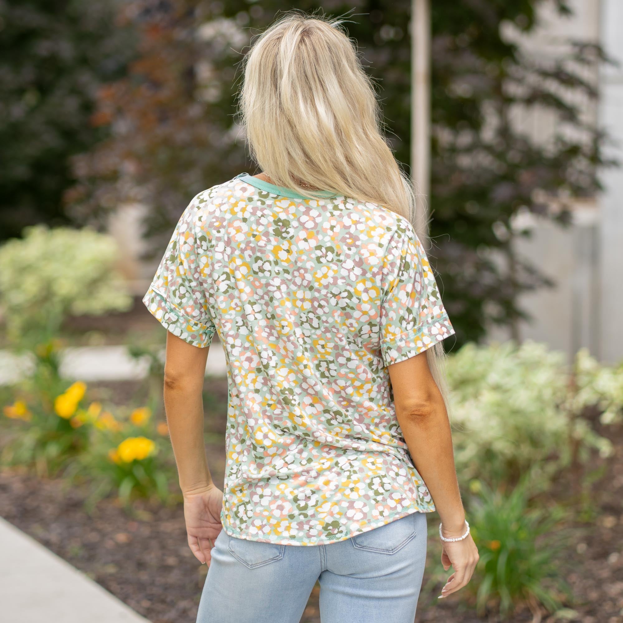 Vanilla Bay Brushed Tie Dye Sequin Trim Leopard Contrast Top