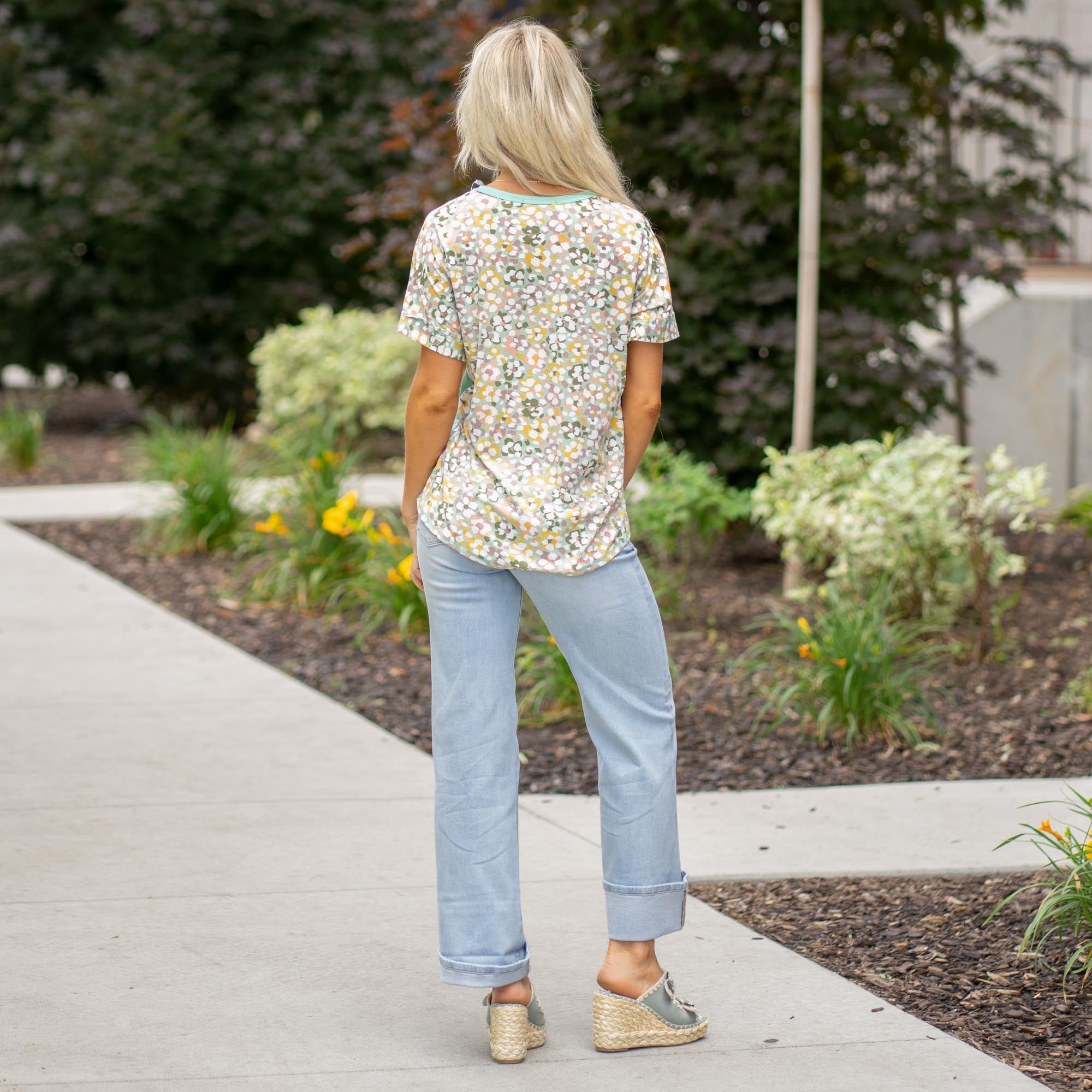 Hem & Thread Marigold Muse Ditsy Smocked Peplum Top Mustard