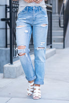 Worn Blue Rolled Up Boyfriend Jeans