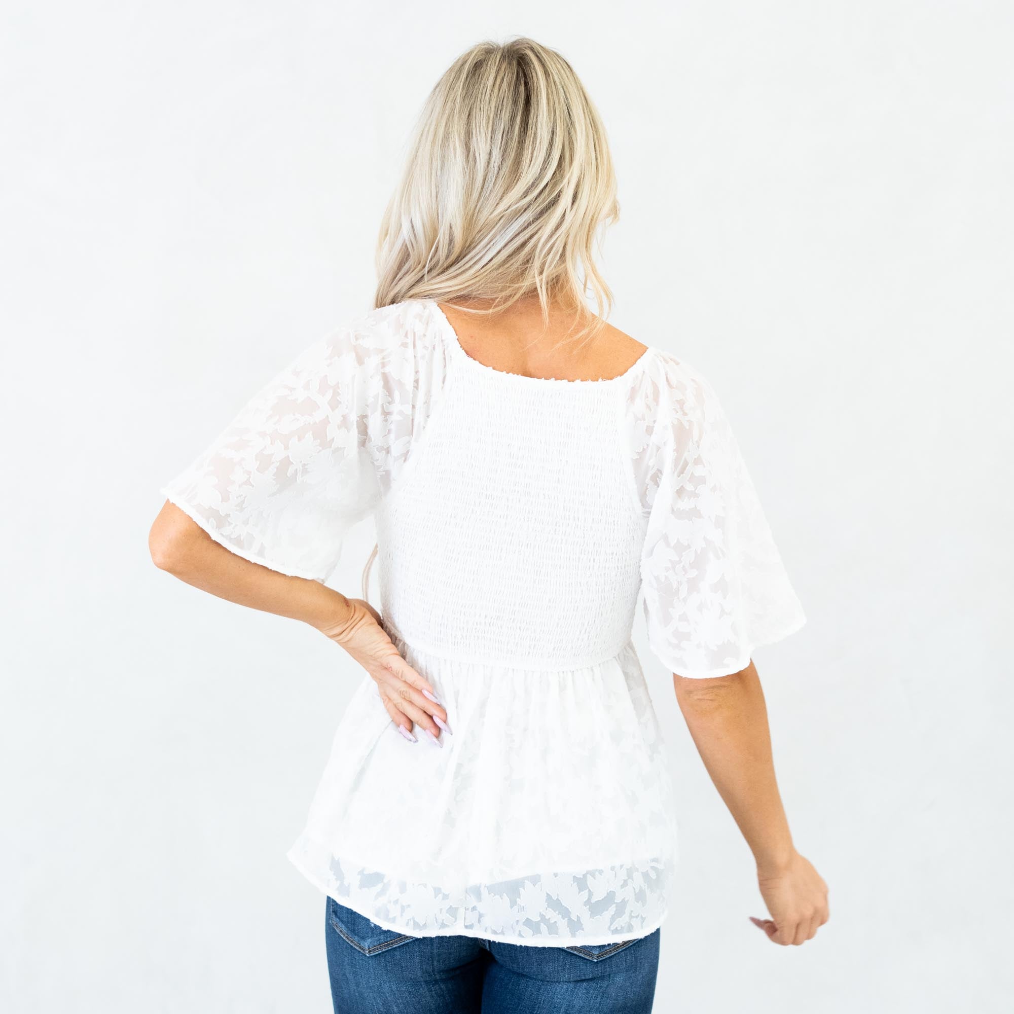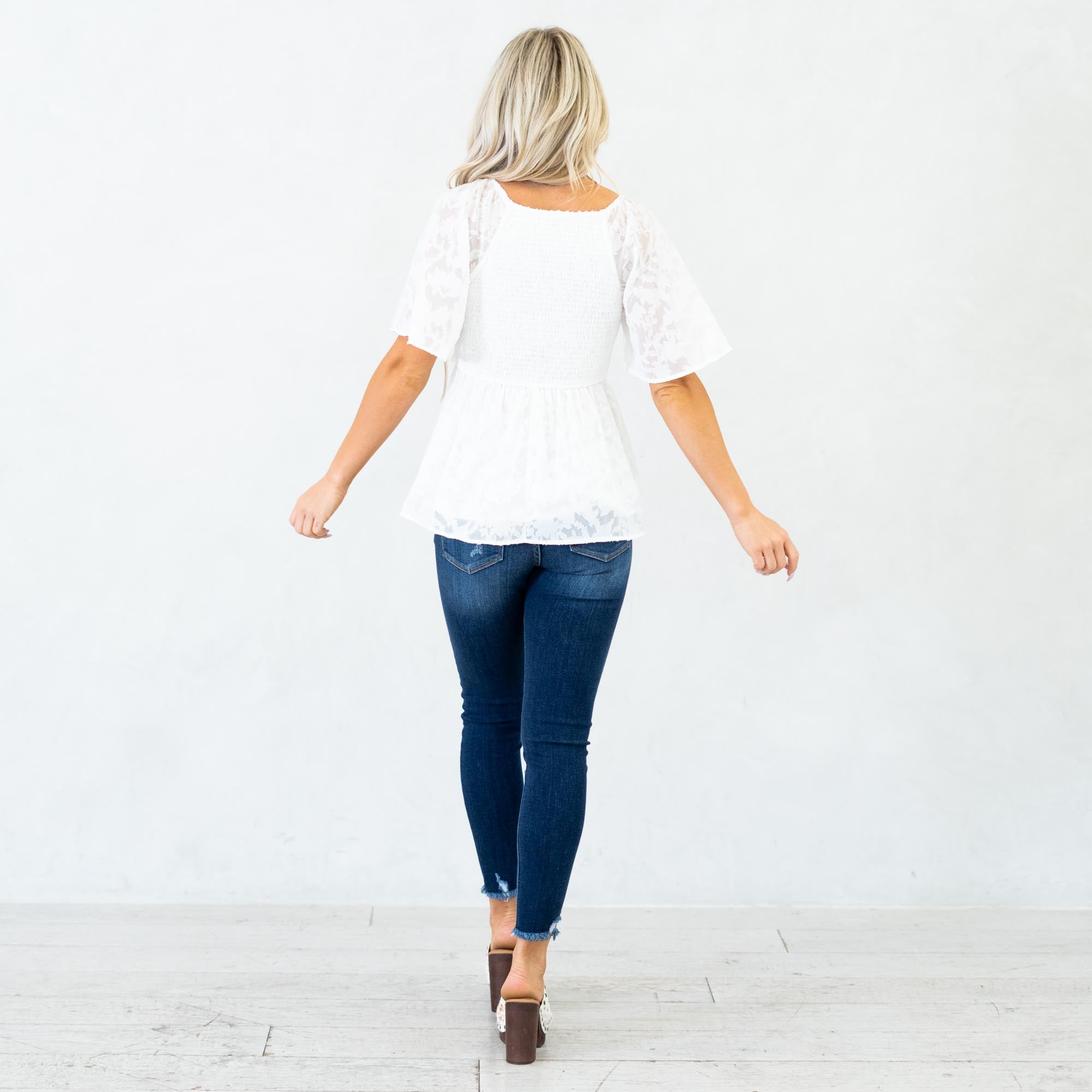 Hem & Thread Midnight Charm Smocked Peplum Top White
