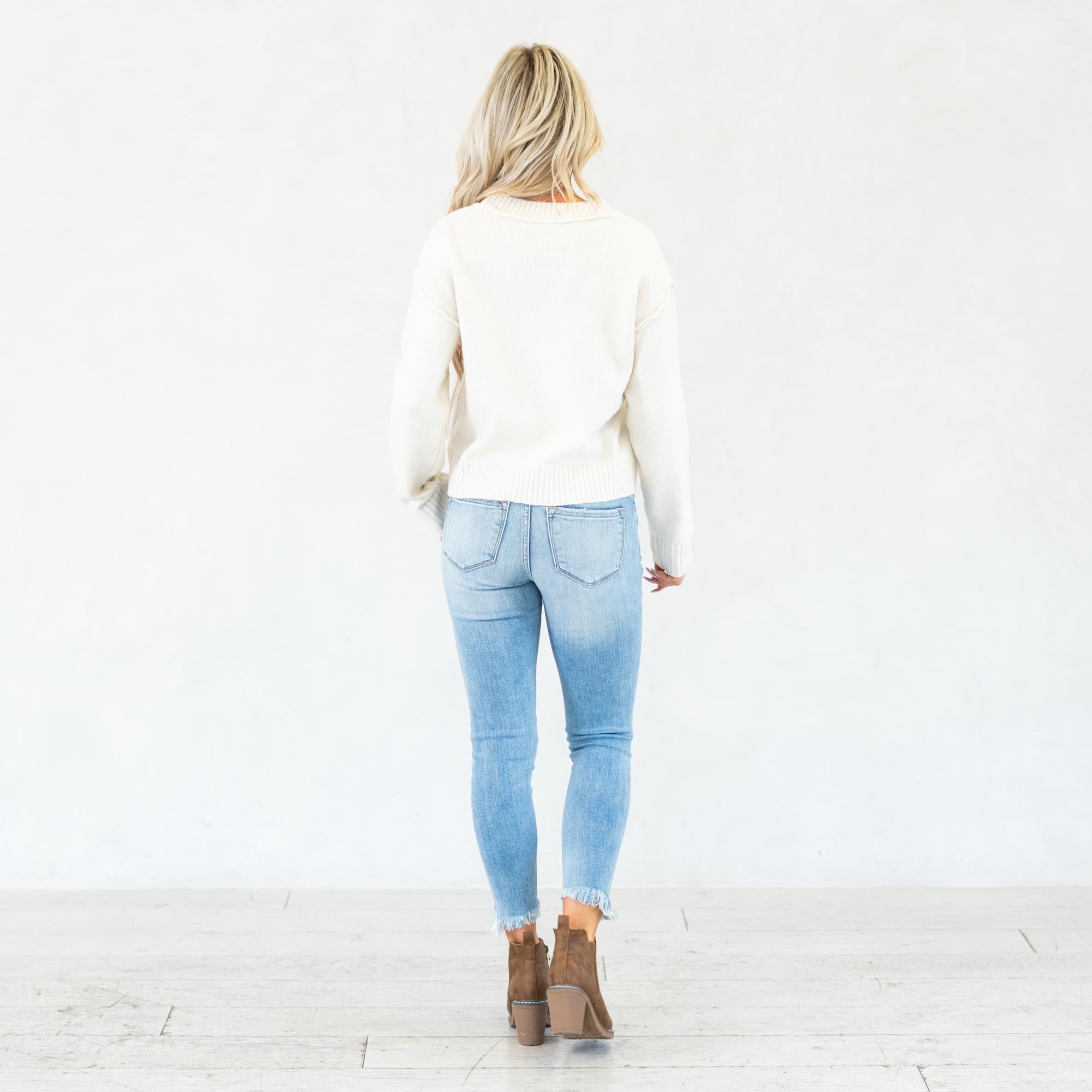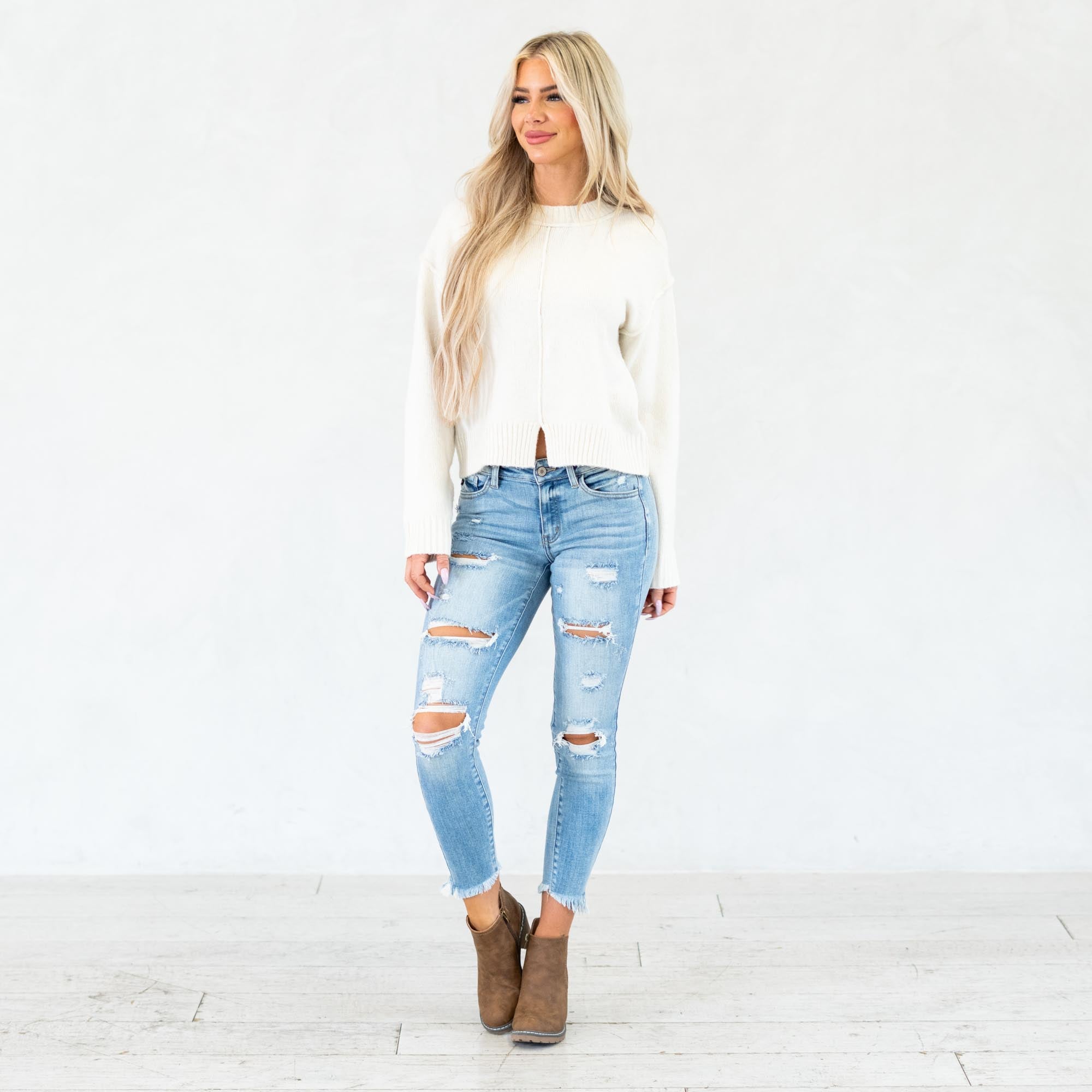 Hem & Thread Ivory Whisper Front Slit Sweater