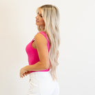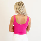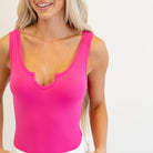 Brushed Dry Microfiber Split Neck Bodysuit Fuchsia