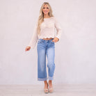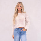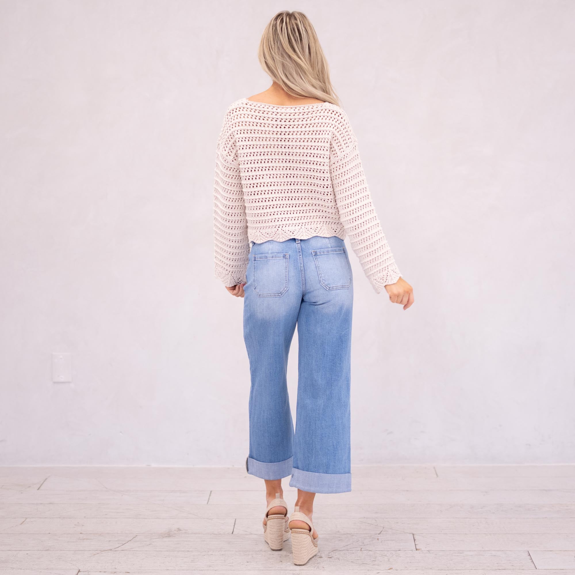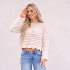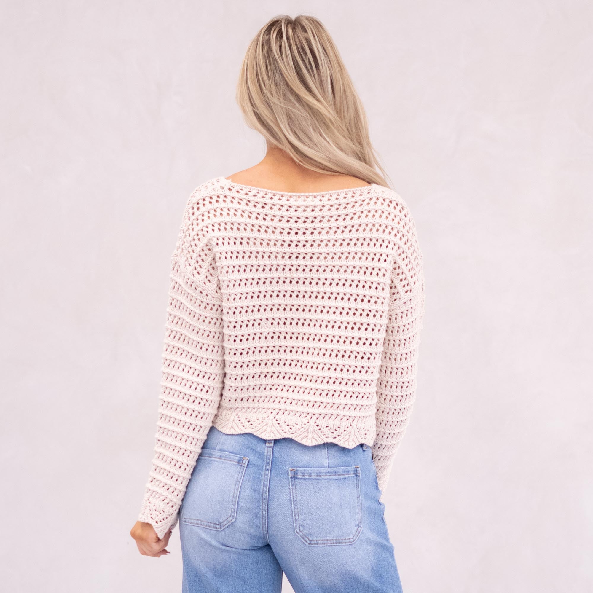 Hem & Thread Coastal Breeze Scalloped Knit Sweater Ecru